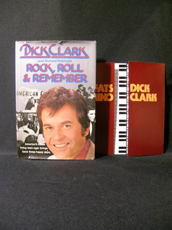Lot of American Bandstand host Dick Clark signed items, including a hardcover copy of Clark's book Rock, Roll and Remember signed and dated 1976 on the inside and an invitation to an event held in New Orleans in the 1980s that Clark hosted. Clark has signed the invitation in blue ink on the inside. A certificate of authenticity for the invitation signature is included.