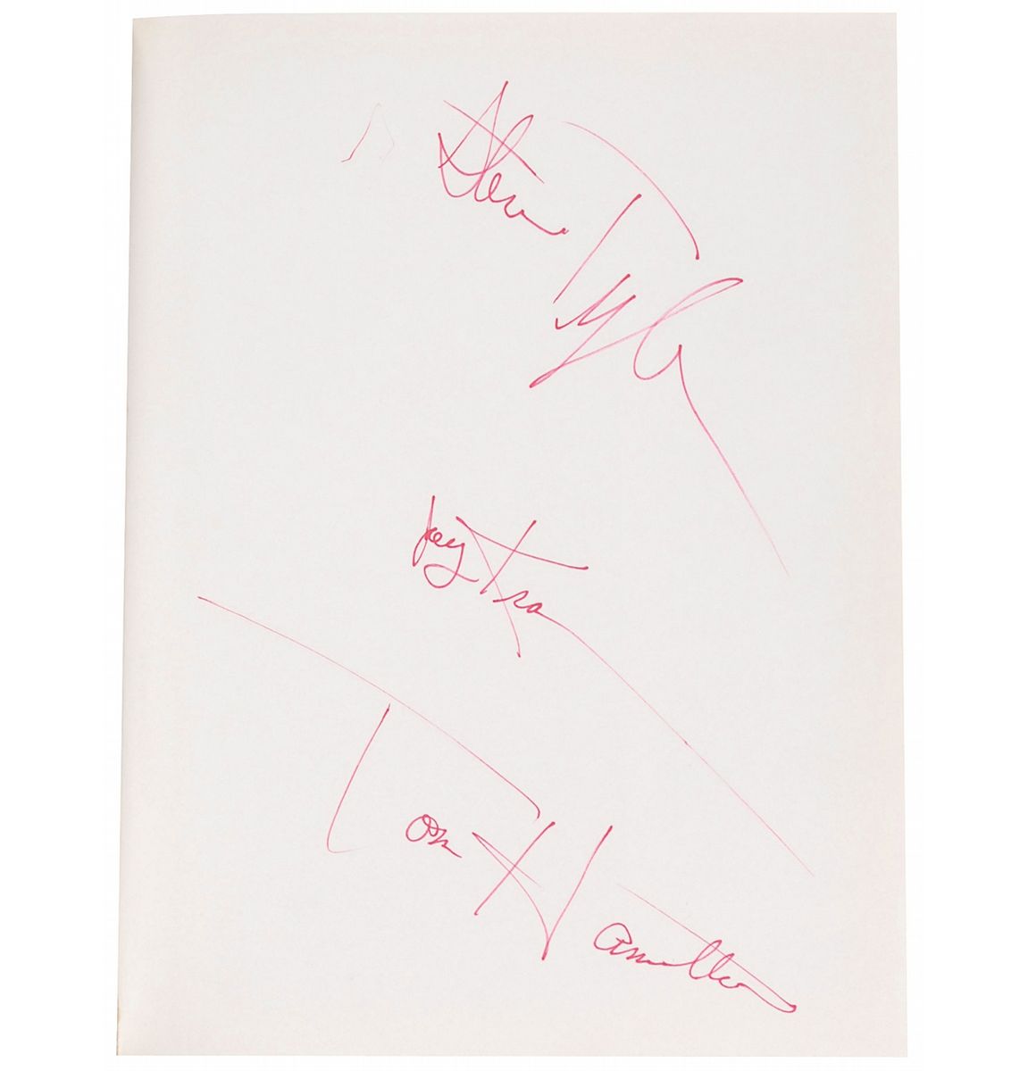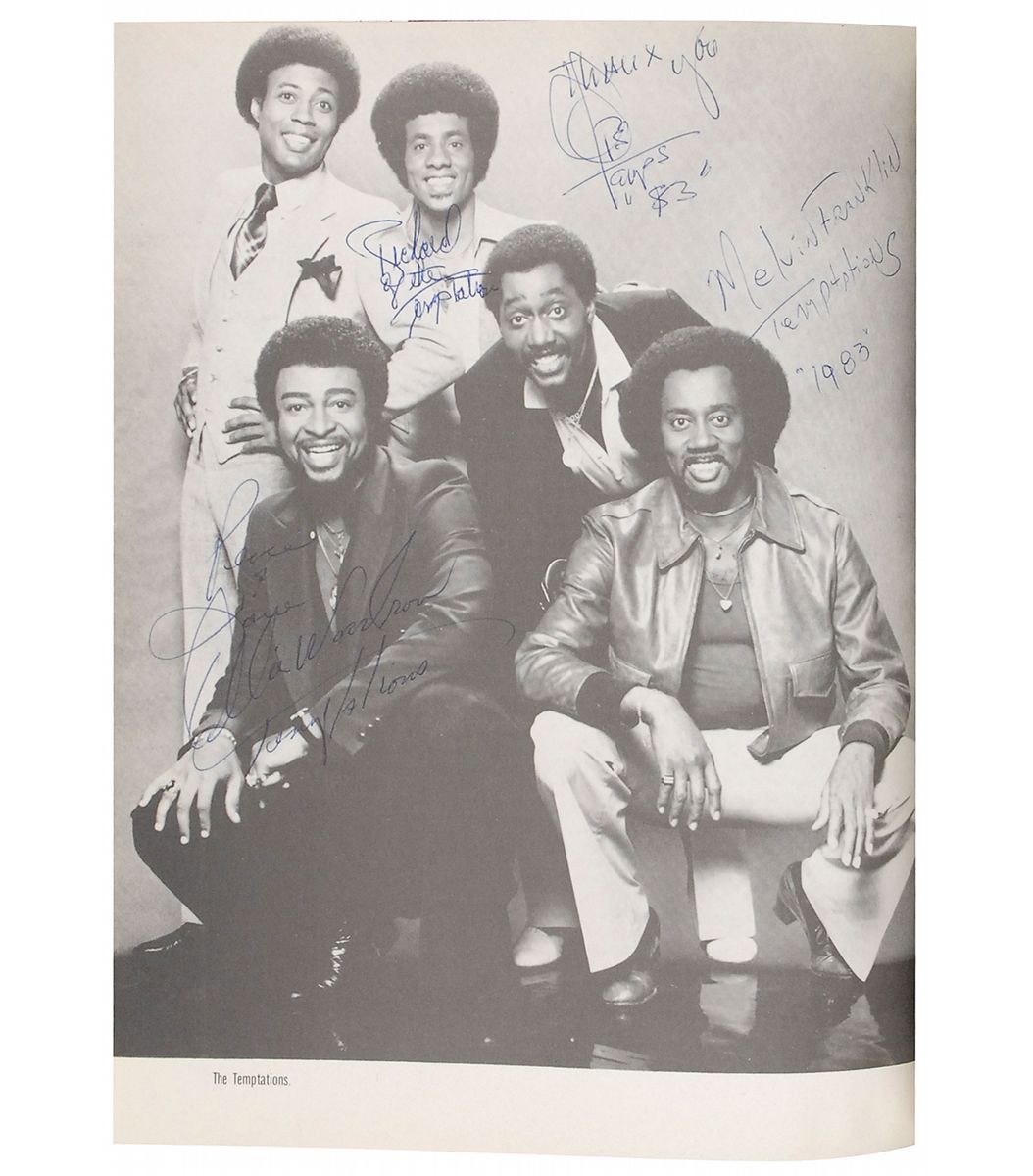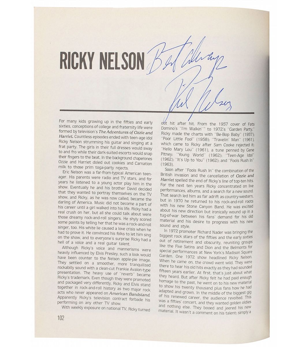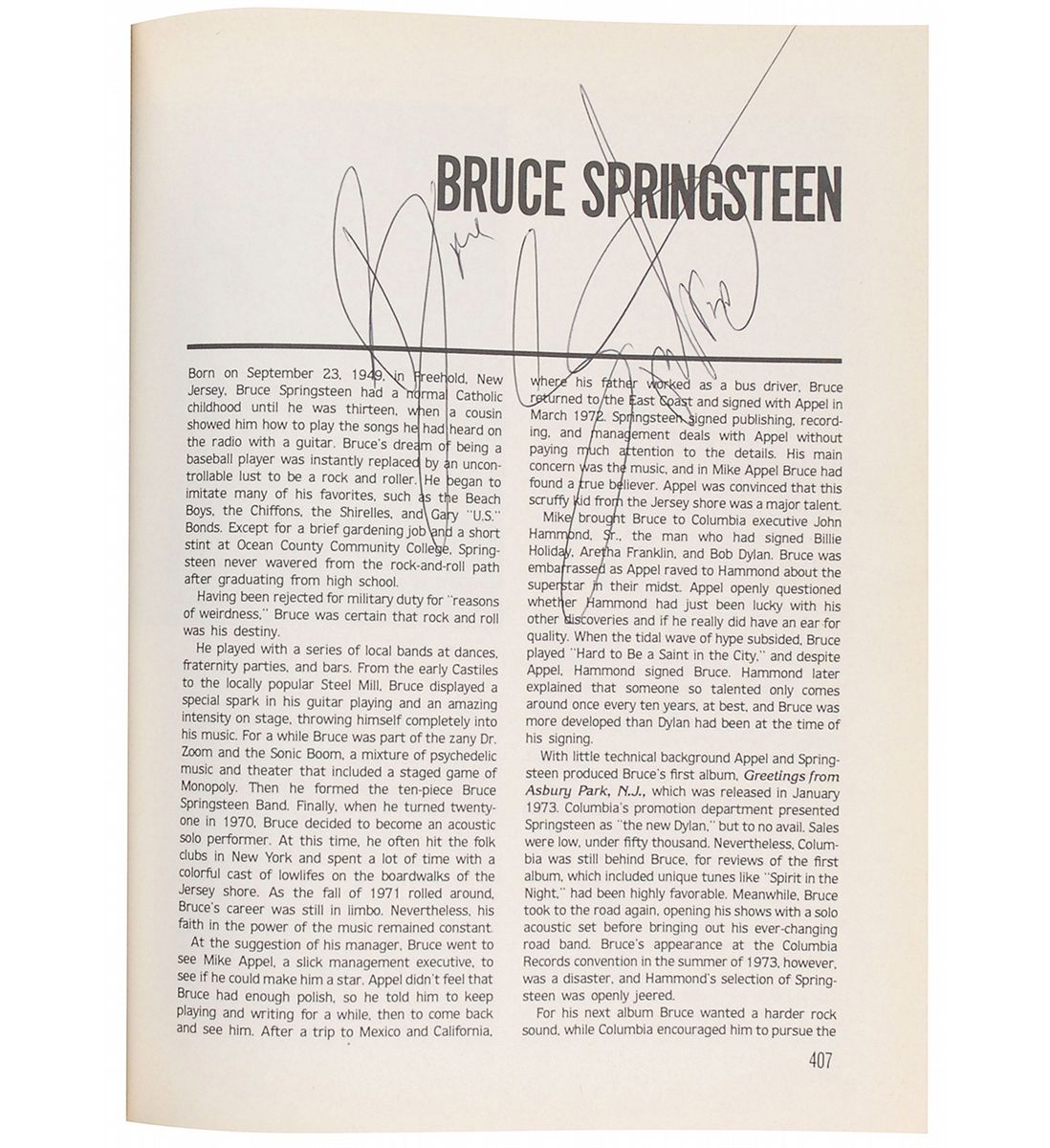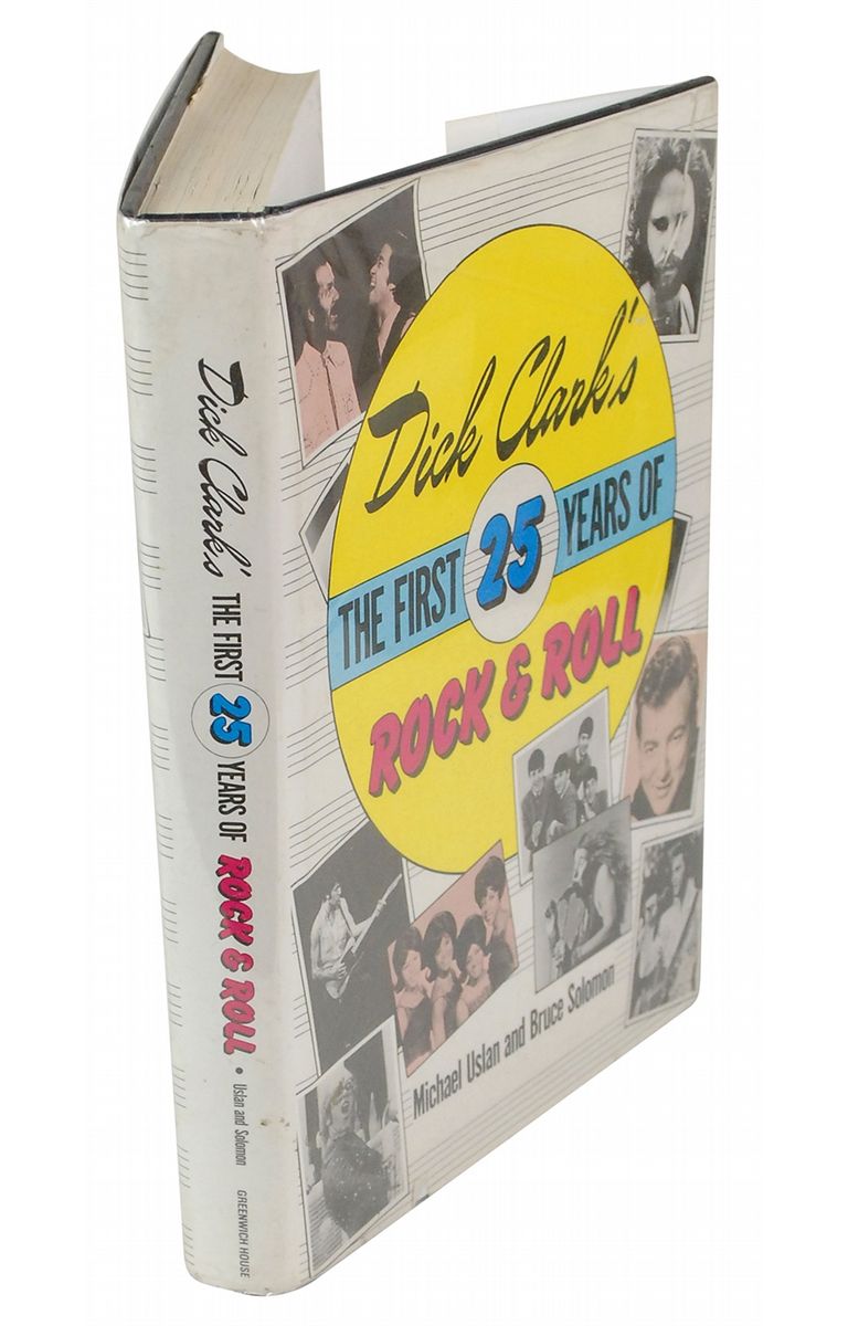 Signed book: Dick Clark’s The First 25 Years of Rock & Roll. Later printing. NY: Greenwich House, 1983. Hardcover with dust jacket, 8.75 x 11.25, 465 pages. Signed inside in felt tip and ballpoint by Gregg Allman (ins), Paul Anka (ins), Chuck Berry, Neil Diamond, Bo Diddley, Don Everly, Phil Everly, The Fifth Dimension, The Four Tops, Leslie Gore, Gary Lewis, Rick Nelson, Lou Rawls, Kenny Rogers, Neil Sedaka (ins), Bruce Springsteen, Rod Stewart (ins), The Temptations, and Steven Tyler (plus other Aerosmith members Tom Hamilton, Joey Kramer, Jimi Crespo, and Rick Dufay). In fine condition, with mild handling wear and a few small tears to dust jacket.