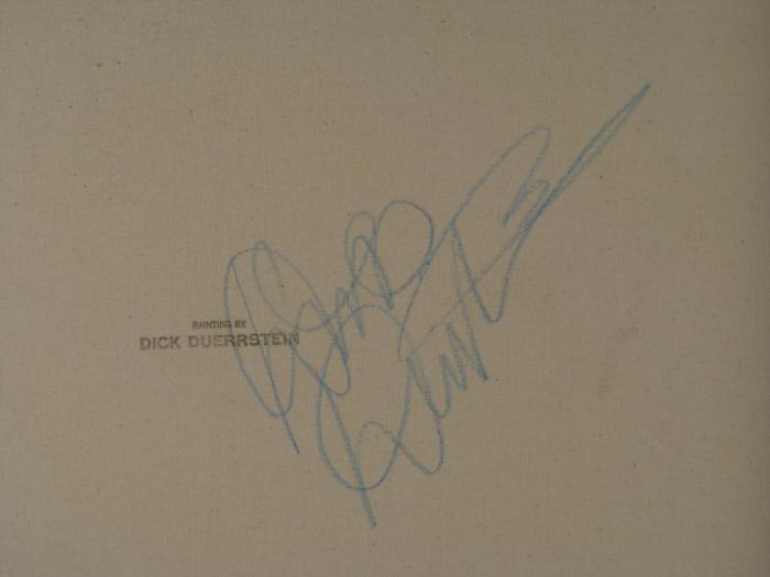 This original painting portrays the Road Runner, as he's jumping up and ready to take off down the road. Artist Dick Duerrstein captures the Road Runner here, with great expression, and a background with natural surface crazing resembling a desert. Medium: Acrylic paint on stretched canvas Signature: Signed by the artist, lower left, and on the versoOther markings: Artist name stamped on the verso Dimensions: 24" x 36" Condition: Mint Certificate of Authenticity: Included This is a great portrayal of the Road Runner, and it's so good you can almost hear him going BEEP BEEP! Duerrstein's work can be found in the Walt Disney Studio corporate offices, Burbank, California; The Library of Congress, Washington, D.C. and St. Jude's Research Hospital in Memphis, Tennessee and private collections worldwide.