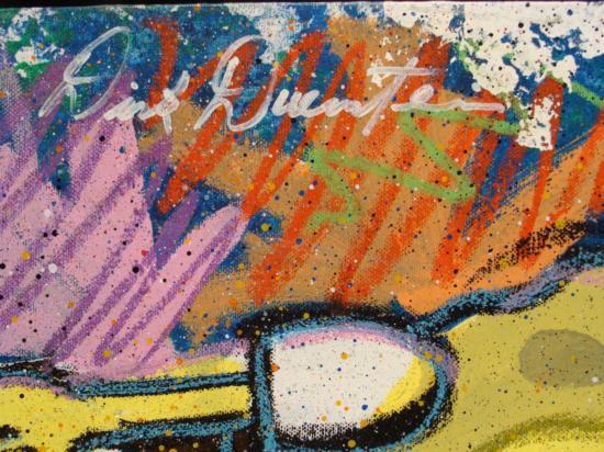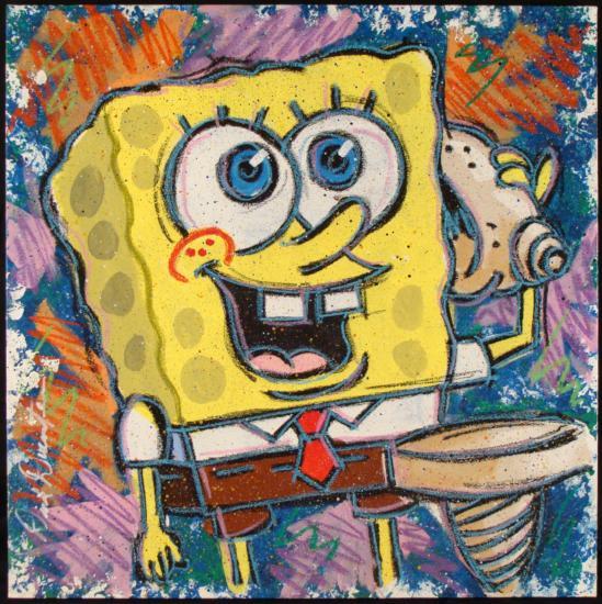 Animation artist Dick Duerrstein is famous for his ability to capture the essence of a character while playfully (and respectfully) reinventing the energy of the original. He ably demonstrates that ability in this vibrant, playful depiction of the beloved cartoon character SpongeBob Squarepants. Title: "SpongeBob Squarepants" Mixed media on canvas Signed by the artist in white paint, lower left Signed by the artist in black marker on the verso Artist name stamped on the verso, and on the frame Canvas: 24" by 24" Condition: Excellent Certificate of Authenticity includedSpongeBob fans will love this vibrant, original painting of everyone's favorite sponge! Duerrstein's work can be found in the Walt Disney Studio corporate offices, Burbank, California; The Library of Congress, Washington, D.C. and St. Jude's Research Hospital in Memphis, Tennessee and private collections worldwide.