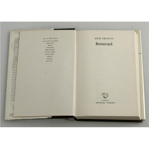 <B>Dick Francis: <I>Bonecrack</B></I></B></I> (London:Michael Joseph, 1971), first edition. Fine in a fine dustjacket. First printing. Lovely copy. Scarce fine. This U.K. edition is the true first edition. Brodart cover.