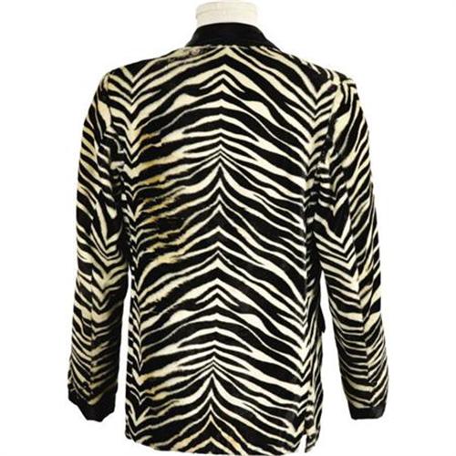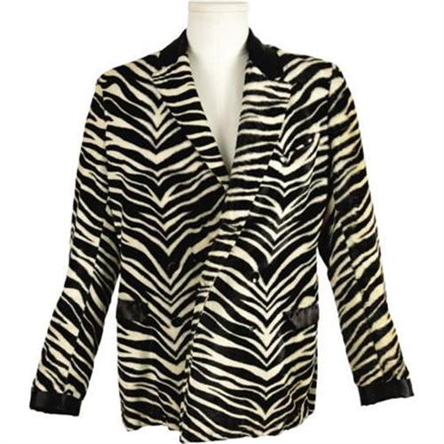 <B>"The Smothers Brothers Comedy Hour" Dick Smothers Screen-Worn Jacket.</B></I> Dick Smothers' wild, faux zebra-skin performance jacket with black satin trim at collar, cuffs and pocket flaps and bright red satin lining, as worn on <I>The Smothers Brothers Comedy Hour</B></I> (1967-69). Western Costume Co. label within features the typed name of the performer, and it was acquired from the Western Costume Co. Star Collection. CBS canceled the popular series when it became clear that Dick and Tommy Smothers would not modify their political comments to appease conservative network censors and advertisers. <I>Authenticated by the world's foremost curators of television artifacts, The Comisar Collection of Beverly Hills.</B></I><BR><BR><b>Shipping:</b> Clothing, Costumes & Jerseys (<a target="_blank" href="http://www.heritageauctions.com/common/shipping.php">view shipping information</a>)