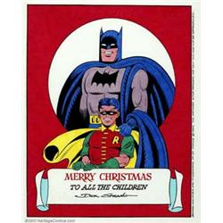 Dick Sprang - Batman and Robin Christmas Illustration (1993). A beautiful drawing by the consummate Batman artist, here the Dynamic Duo send their best wishes for a happy holiday season. With bright, vivid colors and the rendering skills of a master, this piece evocatively captures the feel of the 1950s Batman. Tastefully matted and framed, the image area is approximately 8" x 10".  Important notice: We expect to be auctioning lots at the rate of 200-250 per hour. Sometimes eBay Premier live bid software cannot keep up with that pace, so we strongly recommend that you place a realistic proxy bid now as insurance to avoid disappointment. Also please note that all Heritage/CAA lots purchased through eBay Premier carry a 20% Buyer's Premium.