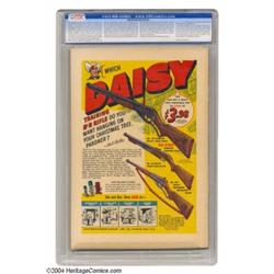 <B>Dick Tracy #71 File Copy (Harvey, 1954) CGC NM 9.4 Cream to off-white pages.</B></I> Crouched in the open trunk of a car, Dick Tracy trades shots with a mysterious man with a flaming hand -- the Fire Bandit! And you can take it from us, the Fire Bandit isn't the only thing <I>smokin'</B></I> here. This beautiful file copy is virtually devoid of defects; it's a very <I>hot</B></I> book that will be sure to inspire <I>heated</B></I> bidding. Overstreet 2004 NM- 9.2 value = $125. <BR><BR><B>Important notice:</B> Heritage usually auctions material at the rate of 200-250 lots per hour. On some occasions eBay Live bid software or the Internet may not be able to keep up with the pace of the auction. We recommend placing a realistic absentee bid now as insurance to avoid disappointment. Occasionally the auctioneer may eliminate or reject an eBay Live bid, and the auctioneer may also reopen a lot after the close of the eBay live bidding (usually because we missed an audience bid), and may reject your bid even if it shows you as the winning bidder. By bidding via eBay Live, you agree that Heritage may award the lot to another bidder at its sole discretion under the circumstances described above or any other reasonable circumstances. Since eBay bids are not shown to us until we open the lot on the floor, we treat those bids just like floor bids. In most cases the floor responds before the eBay bid is presented to us, due to Internet lag time, so for consistency we have made it a policy that floor bids are always considered first over tie eBay live bids. Also please note that all Heritage lots purchased through eBay Live carry a 20% Buyer's Premium. Please make sure you read the Terms and Conditions before you bid.