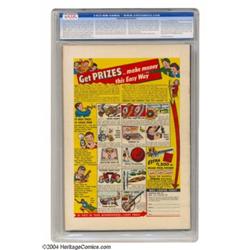 <B>Dick Tracy #73 File Copy (Harvey, 1954) CGC VF/NM 9.0 Cream to off-white pages.</B></I> The determined detective Dick Tracy has cornered his quarry and literally "treed" the villain -- in a treehouse! Now it's gun vs. jagged glass, complicated by a breaking tree limb. It's definitely a dramatic tableau, as drawn by artist Al Avison. Like the other Dick Tracy file copies in this auction, this copy has startlingly brilliant cover colors. Overstreet 2004 VF/NM 9.0 value = $96; NM- 9.2 value = $125. <BR><BR><B>Important notice:</B> Heritage usually auctions material at the rate of 200-250 lots per hour. On some occasions eBay Live bid software or the Internet may not be able to keep up with the pace of the auction. We recommend placing a realistic absentee bid now as insurance to avoid disappointment. Occasionally the auctioneer may eliminate or reject an eBay Live bid, and the auctioneer may also reopen a lot after the close of the eBay live bidding (usually because we missed an audience bid), and may reject your bid even if it shows you as the winning bidder. By bidding via eBay Live, you agree that Heritage may award the lot to another bidder at its sole discretion under the circumstances described above or any other reasonable circumstances. Since eBay bids are not shown to us until we open the lot on the floor, we treat those bids just like floor bids. In most cases the floor responds before the eBay bid is presented to us, due to Internet lag time, so for consistency we have made it a policy that floor bids are always considered first over tie eBay live bids. Also please note that all Heritage lots purchased through eBay Live carry a 20% Buyer's Premium. Please make sure you read the Terms and Conditions before you bid.