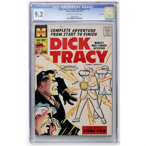 <B>Dick Tracy Comics Monthly #112 File Copy (Harvey, 1957) CGC NM- 9.2 Cream to off-white pages.</B></I> Overstreet 2008 NM- 9.2 value = $110. CGC census 4/08: 1 in 9.2, 1 higher.<BR><BR><b>Shipping:</b> Comics - Slabbed (certified) (<a target="_blank" href="http://www.heritageauctions.com/common/shipping.php">view shipping information</a>)