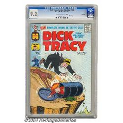<B>Dick Tracy Comics Monthly #142 File Copy (Harvey, 1960) CGC NM- 9.2 Cream to off-white pages.</B></I> To date CGC has not certified another copy of this issue. Overstreet 2004 NM- 9.2 value = $115. <I>From the collection of Larry Doucet</B></I>. <BR><BR><B>Important notice:</B> Heritage usually auctions material at the rate of 200-250 lots per hour. On some occasions eBay Live bid software or the Internet may not be able to keep up with the pace of the auction. We recommend placing a realistic absentee bid now as insurance to avoid disappointment. Occasionally the auctioneer may eliminate or reject an eBay Live bid, and the auctioneer may also reopen a lot after the close of the eBay live bidding (usually because we missed an audience bid), and may reject your bid even if it shows you as the winning bidder. By bidding via eBay Live, you agree that Heritage may award the lot to another bidder at its sole discretion under the circumstances described above or any other reasonable circumstances. Since eBay bids are not shown to us until we open the lot on the floor, we treat those bids just like floor bids. In most cases the floor responds before the eBay bid is presented to us, due to Internet lag time, so for consistency we have made it a policy that floor bids are always considered first over tie eBay live bids. Also please note that all Heritage lots purchased through eBay Live carry a 20% Buyer's Premium. Please make sure you read the Terms and Conditions before you bid.