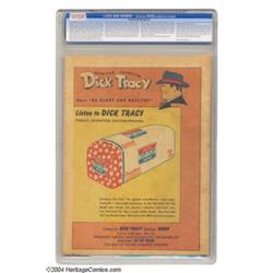 <B>Dick Tracy Presents The Family Fun Book Giveaway #nn File Copy (Fawcett, 1940) CGC VG- 3.5 Off-white pages.</B></I> An interesting give-away comic from the makers of Tip Top Bread, and it also promotes the WHDH radio station, urging listeners to tune in to their Dick Tracy program. The comic features such Fawcett stalwarts as Spy Smasher, Ibis, and Lance O'Casey. A scarce and desirable promotional comic. Overstreet 2004 VG 4.0 value = $100. <BR><BR><B>Important notice:</B> Heritage usually auctions material at the rate of 200-250 lots per hour. On some occasions eBay Live bid software or the Internet may not be able to keep up with the pace of the auction. We recommend placing a realistic absentee bid now as insurance to avoid disappointment. Occasionally the auctioneer may eliminate or reject an eBay Live bid, and the auctioneer may also reopen a lot after the close of the eBay live bidding (usually because we missed an audience bid), and may reject your bid even if it shows you as the winning bidder. By bidding via eBay Live, you agree that Heritage may award the lot to another bidder at its sole discretion under the circumstances described above or any other reasonable circumstances. Since eBay bids are not shown to us until we open the lot on the floor, we treat those bids just like floor bids. In most cases the floor responds before the eBay bid is presented to us, due to Internet lag time, so for consistency we have made it a policy that floor bids are always considered first over tie eBay live bids. Also please note that all Heritage lots purchased through eBay Live carry a 20% Buyer's Premium. Please make sure you read the Terms and Conditions before you bid.