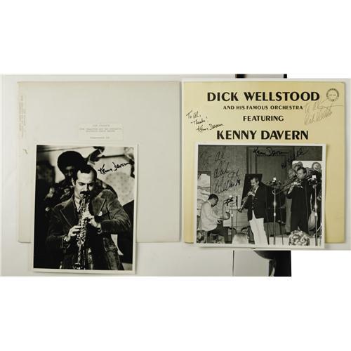 <B>Dick Wellstood Signed Record and Photo Group.</B></I> Pianist Dick Wellstood is joined by clarinetist Kenny Davern for a swinging set in this lot. Included are: "Dick Wellstood and His Orchestra Featuring Kenny Davern" (test pressing #4941of Chiaroscuro Records 230) with its label signed by Kenny Davern (and a signed photo of Davern); and "Dick Wellstood and His Famous Orchestra Featuring Kenny Davern" (Chiaroscuro Records CR 129) with its cover signed by Davern and Dick Wellstood (and a signed photo of Davern, Wellstood, and Ed Hubble). <I>From the Al White Jazz autograph archive.</B></I><BR><BR><b>Shipping:</b> Recordings (<a target="_blank" href="http://www.heritageauctions.com/common/shipping.php">view shipping information</a>)