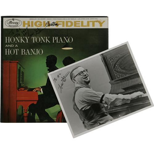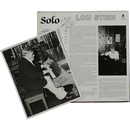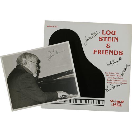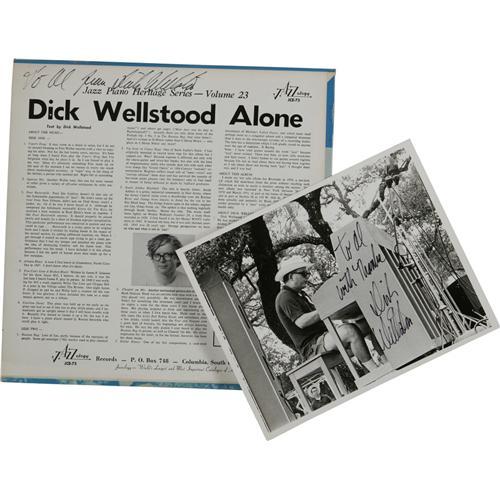 <B>Dick Wellstood and Lou Stein Autograph Record and Photo Group of 8.</B></I> Dick Wellstood "One Man Jazz Machine..." autographed by Dick Wellstood (with autographed photo); "Dick Wellstood Alone" autographed by Dick Wellstood (with autographed photo); Lou Stein & Friends autographed by Lou Stein, Bucky Pizzarelli, Milt Hinton, and Kenny Davern (with autographed photo); Lou Stein and John Cali "Honky Tonk Piano and a Hot Banjo" autographed by Lou Stein (with autographed photo), and Lou Stein "Solo" autographed by Lou Stein (with autographed photo). <I>From the Al White Autograph Archive.</B></I><BR><BR><b>Shipping:</b> Recordings (<a target="_blank" href="http://www.heritageauctions.com/common/shipping.php">view shipping information</a>)