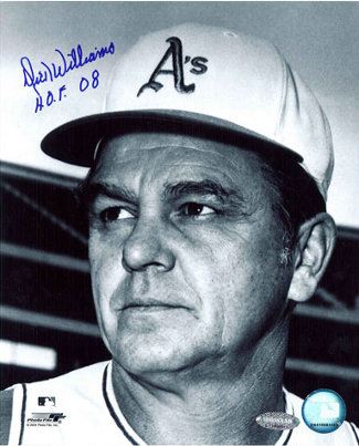 Dick Williams was an American left fielder, third baseman, manager, coach and front office consultant in Major League Baseball. Known especially as a hard-driving, sharp-tongued manager from 1967–69 and 1971–88, he led teams to three American League pennants, one National League pennant, and two World Series triumphs. He is one of seven managers to win pennants in both major leagues, and joined Bill McKechnie in becoming only the second manager to lead three franchises to the Series. He and Lou Piniella are the only managers in history to lead four teams to seasons of 90 or more wins. Williams was inducted into the Baseball Hall of Fame in 2008 following his election by the Veterans Committee. Dick Williams died near his home in Henderson, Nevada on July 7, 2011. Dick Williams has hand signed this Oakland A's 8x10 Photo with HOF 08 inscription. Ironclad Hologram and Certificate of Authenticity from Athlon Sports.
