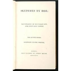 [Dickens, Charles], Sketches by Boz: Illustrative of Every-Day Life, and Every-Day People. The Second Series. Complete in One Volume, London, John Macrone, 1837 [i.e., 17th December 1836], 12mo (185 x 115mm.), additional illustrated title/frontispiece by Cruikshank, and 9 plates (not yet with the 2 later plates), contemporary calf gilt by Riviere & Son, spine in 5 gilt compartments, First Edition, first issue.