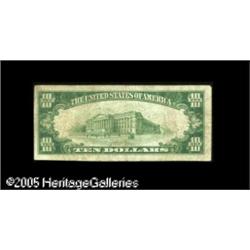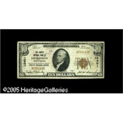 <B>Dickinson, ND</B></I> - $10 1929 Ty. 1 <B>The Liberty NB</B></I> Ch. # 12401<BR>This thinly capitalized bank was chartered in 1923 and ordered only $60,910 worth of notes, all in the $10 and $20 Plain Back and the 1929 Type 1 designs. Seven small survivors are documented in the latest edition of the Kelly census. This <B>Fine</B></I> displays normal circulation soiling for the grade and light indications of a purple bank stamp on the face.<BR><I>Purchased from Allen's Coin Shop.</B></I> Lot:16943