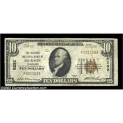 Dickson, TN - $10 1929 Ty. 1 The Citizens NB Ch. # 8292Type ones only in small size from this very scarce bank, with the Kelly census standing at just four small (and three large) examples extant. Nice Fine-Very Fine, certain to see substantial competition from this state's many collectors. Important notice: Heritage usually auctions material at the rate of 200-250 lots per hour. On some occasions eBay Live bid software or the Internet may not be able to keep up with the pace of the auction. We recommend placing a realistic absentee bid now as insurance to avoid disappointment. Occasionally the auctioneer may eliminate or reject an eBay Live bid, and the auctioneer may also reopen a lot after the close of the eBay live bidding (usually because we missed an audience bid), and may reject your bid even if it shows you as the winning bidder. By bidding via eBay Live, you agree that Heritage may award the lot to another bidder at its sole discretion under the circumstances described above or any other reasonable circumstances. Also please note that all Heritage lots purchased through eBay Live carry a 20% Buyer's Premium. Please make sure you read the Terms and Conditions before you bid.