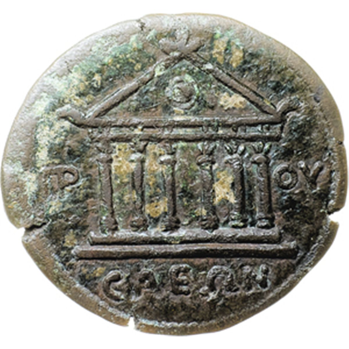 Impero Romano. Didio Giuliano (193 d.C.). AE 25mm. Prusa ad Olympum, Bithynia. D/ AYT KM ŒîIŒîIOC IOYŒõIANOC AVŒì. Busto laureato e corazzato a destra. R/ Facciata di tempio esastilo. Nel campo, Œ†P (in monogramma) - OY. In esergo: CAEŒ©N. BMC 13.196,15. AE. g. 5.83 RRR. qSPL. L'unica emissione provinciale al nome di Didio Giuliano. Di grande raritv† e interesse, con un ritratto di stile straordinario.