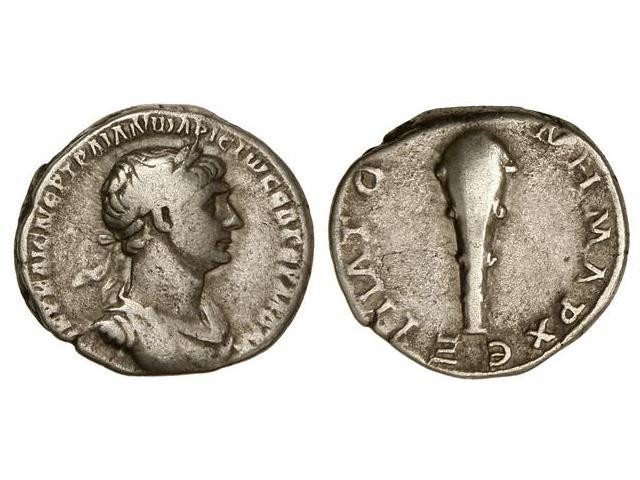 Didracma. 98-117 d.C. TRAJANO. CAPADOCIA CAESAREA. Anv.: Busto laureado a derecha. Rev.: Clava, alrededor leyenda. 6,50 grs. AR. Se-No cat.; Sydenham-214. MBC-/MBC.