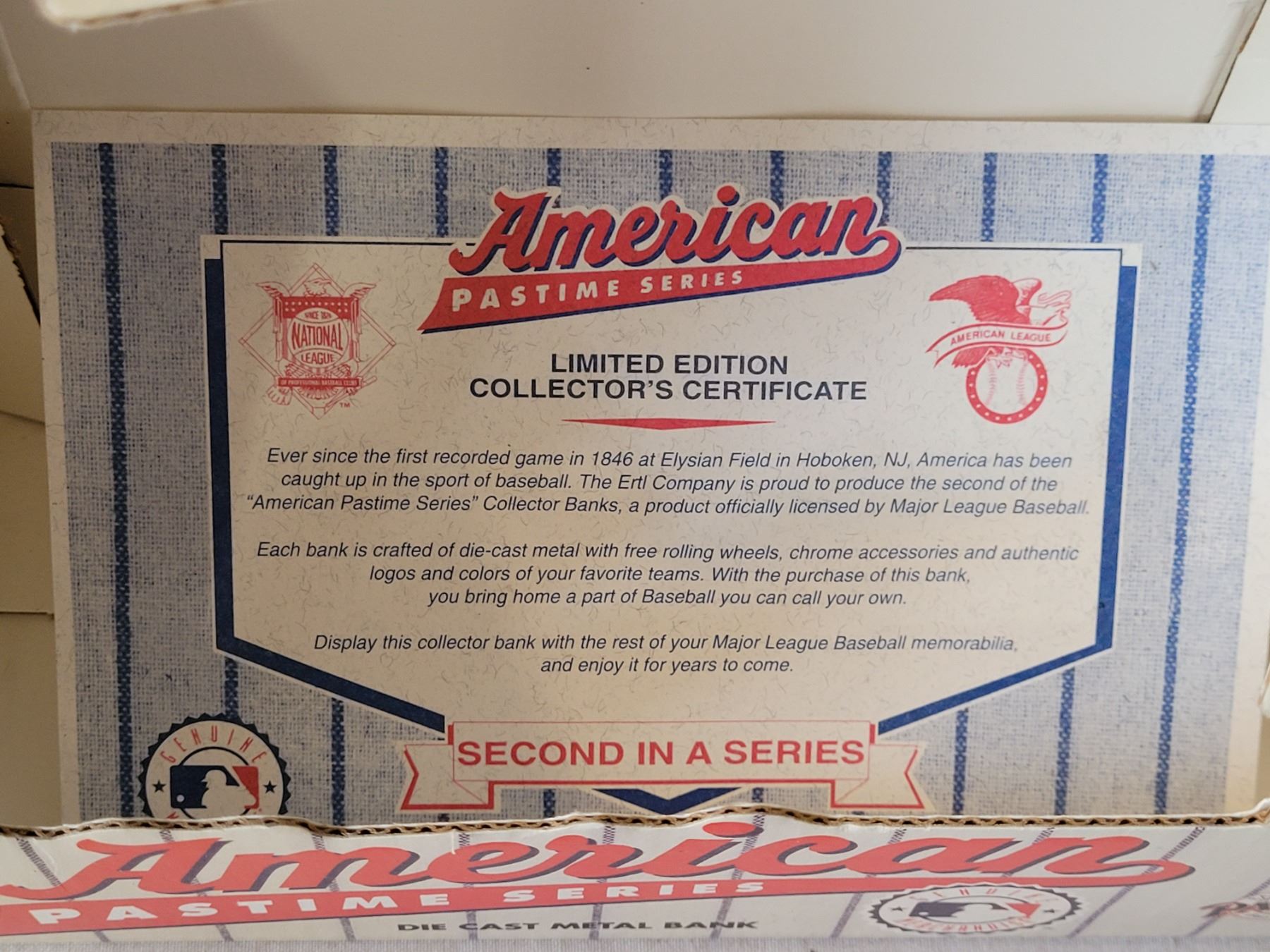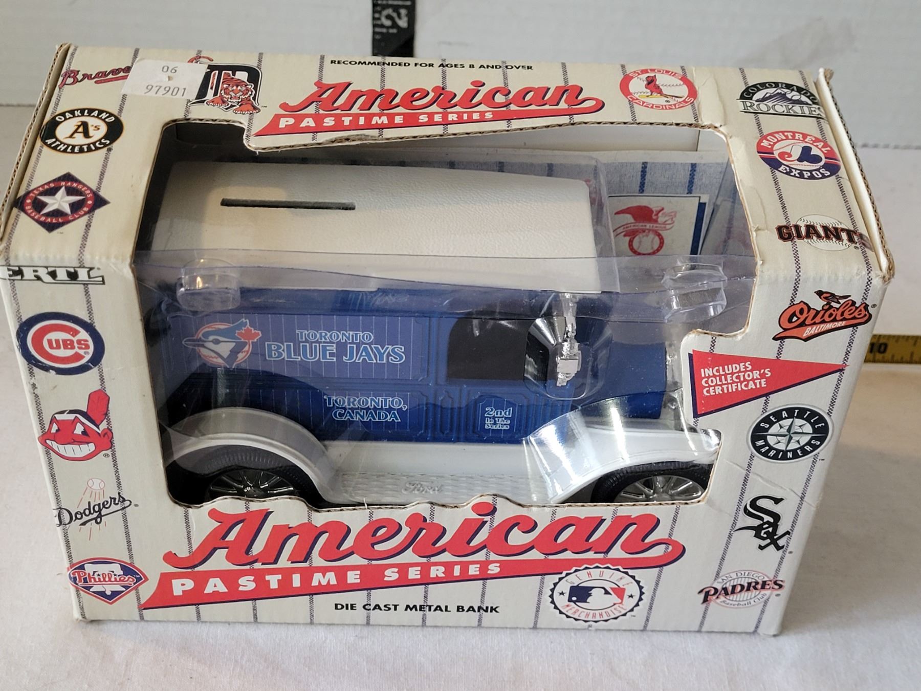 Die-Cast Metal Blue Jays Truck Bank with certificate. American Pastime 2nd in Series.