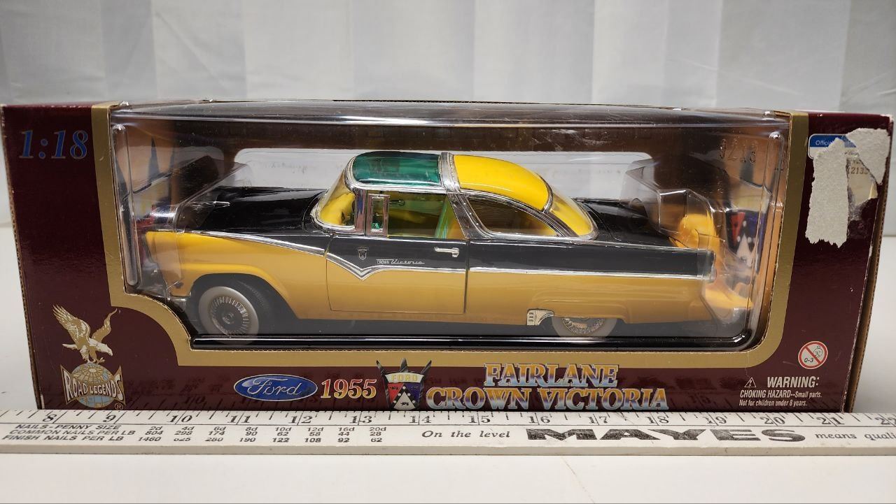 Die Cast Road Legends - 1955 Black & Yellow FORD FAIRLANE CROWN VICTORIA - 1:18 Scale