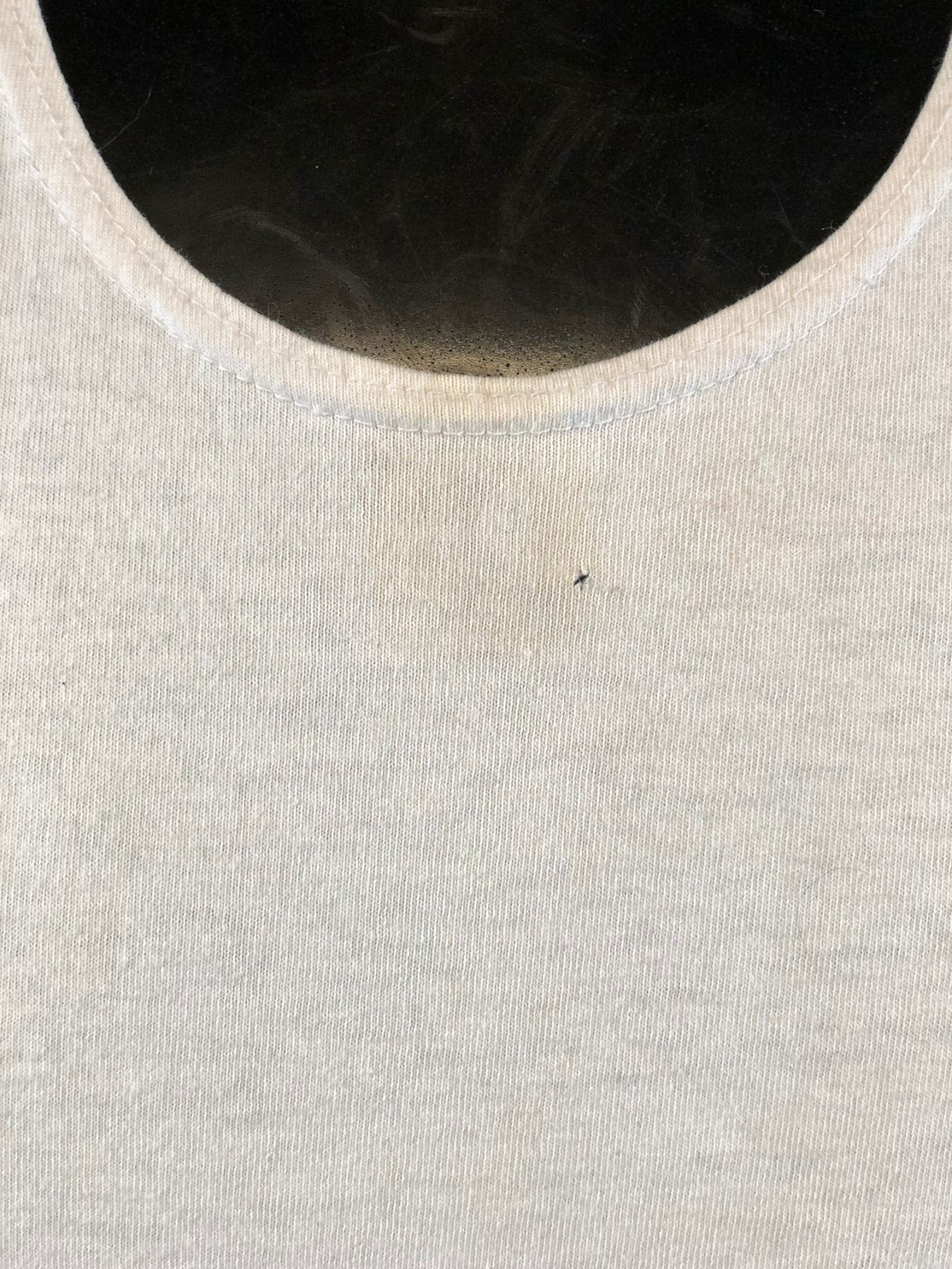 Original white tank top worn by "John McClane", played by Bruce Willis in the action film Die Hard (1988), where An NYPD officer tries to save his wife and several others taken hostage by German terrorists during a Christmas party at the Nakatomi Plaza in Los Angeles.