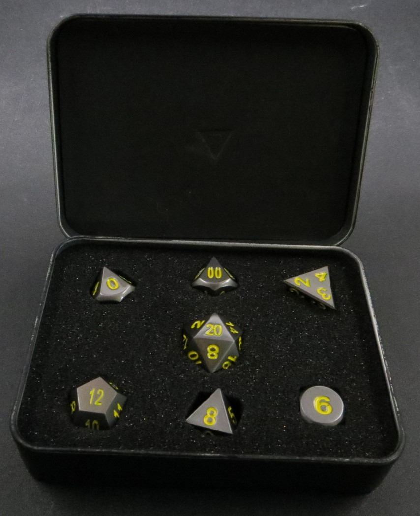 Die Hard Dice - RPG Metal Sinister Chrome with Yellow - Set of 7