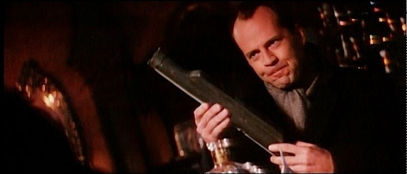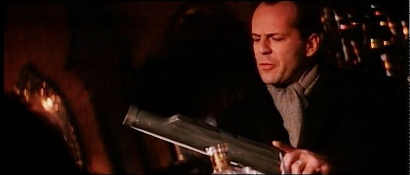 (Twentieth Century Fox Film Corporation, 1995) This prop Chinese grenade launcher was constructed of metal, with no target sights and was specially created for use by Bruce Willis as "John McClane". The prop was used in the alternate ending; the prop grenade launcher was the only one of its kind created for the film. The launcher is hollow inside; this was done so a 'charge' or 'explosive' could be inserted inside by the SFX crew to simulate the grenade launcher going off and killing Simon Gruber (Jeremy Irons) during his meeting with John McClane in the bar. Measures 19" in length.