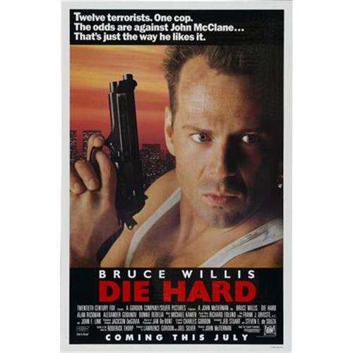 <B>"Die Hard" One Sheet Movie Poster (20th Century Fox, 1988) Condition: VF/NM.</B></I> Feature film starring Bruce Willis and Bonnie Bedelia. Poster comes rolled in a tube.<BR><BR><b>Shipping:</b> Rolled Material (<a target="_blank" href="http://www.heritageauctions.com/common/shipping.php">view shipping information</a>)