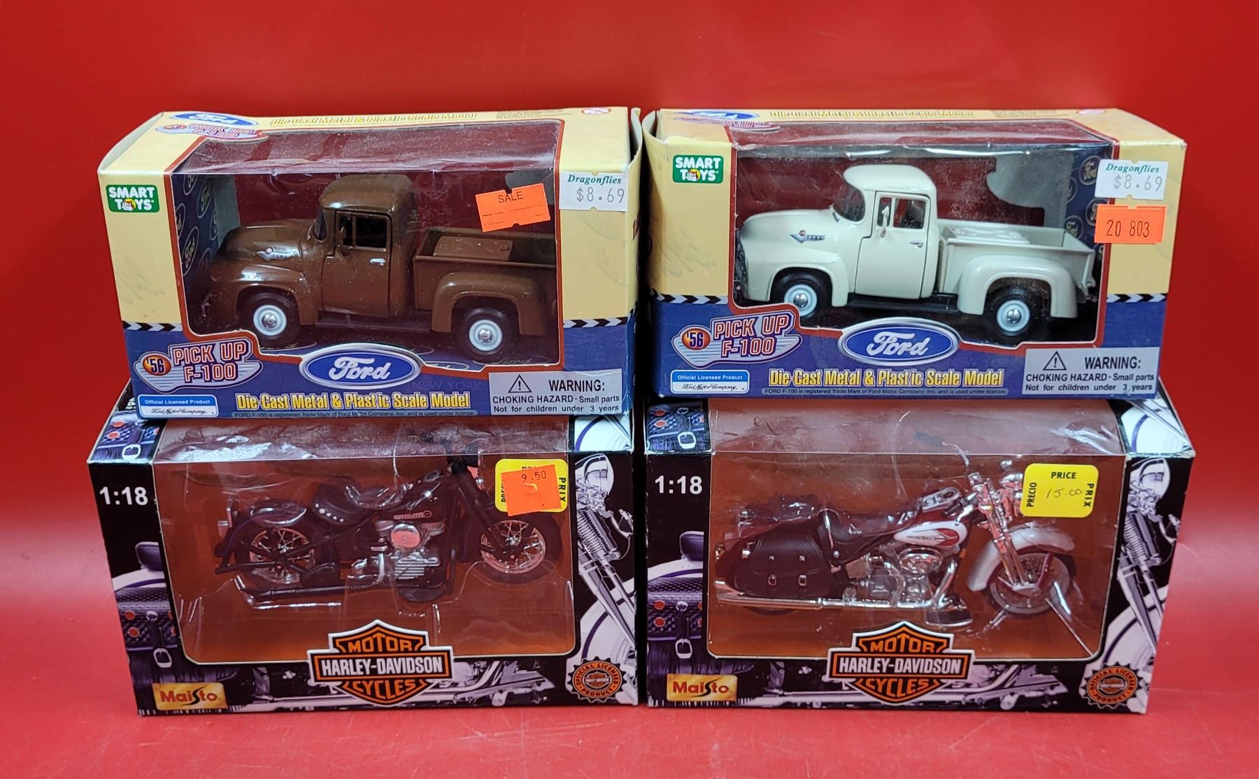 Diecast Vehicle Lot w/ '56 Ford Pickup F-100, Harley-Davidson Motorcycle, & More