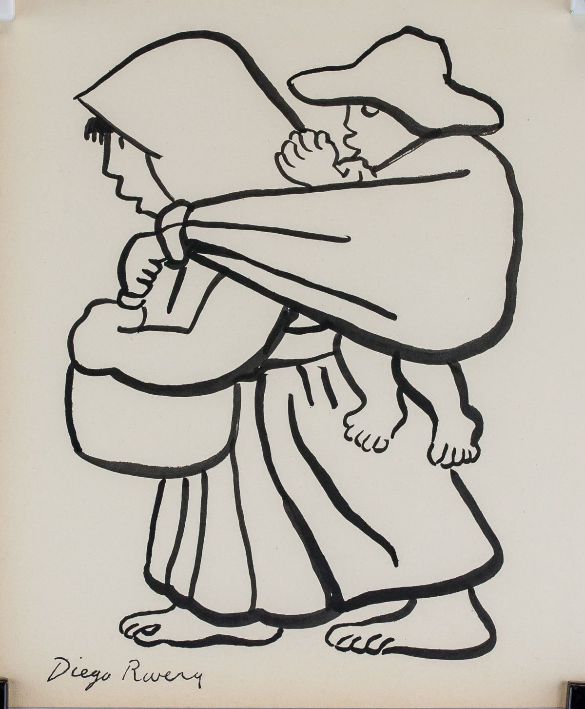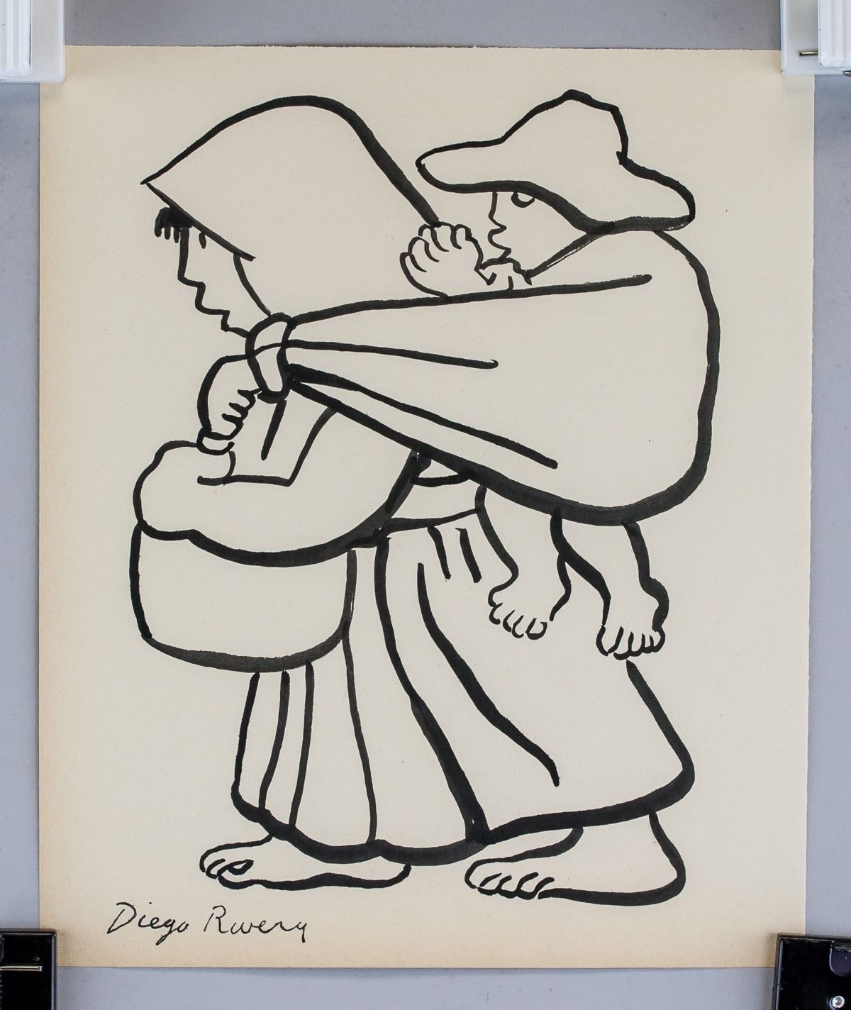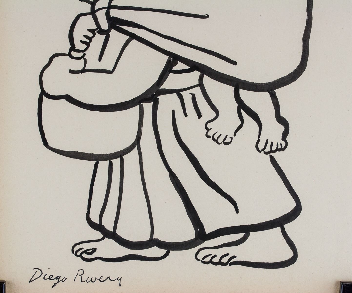 Ink on paper. Featuring a peasant portrait. Signed Diego Rivera on the lower left corner. Attributed to Diego Rivera (1886-1957, Mexican). 26.5 x 22 cm (10.5 x 8.75 in). PROVENANCE: Upper New York estate