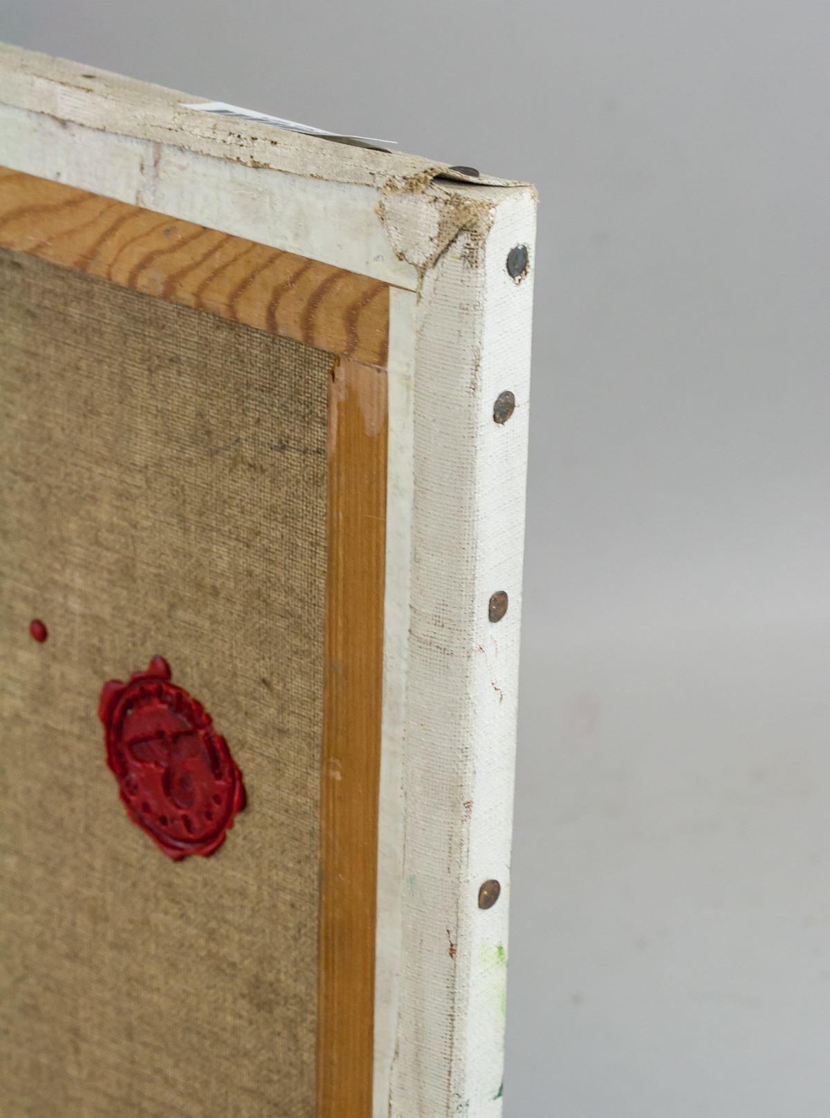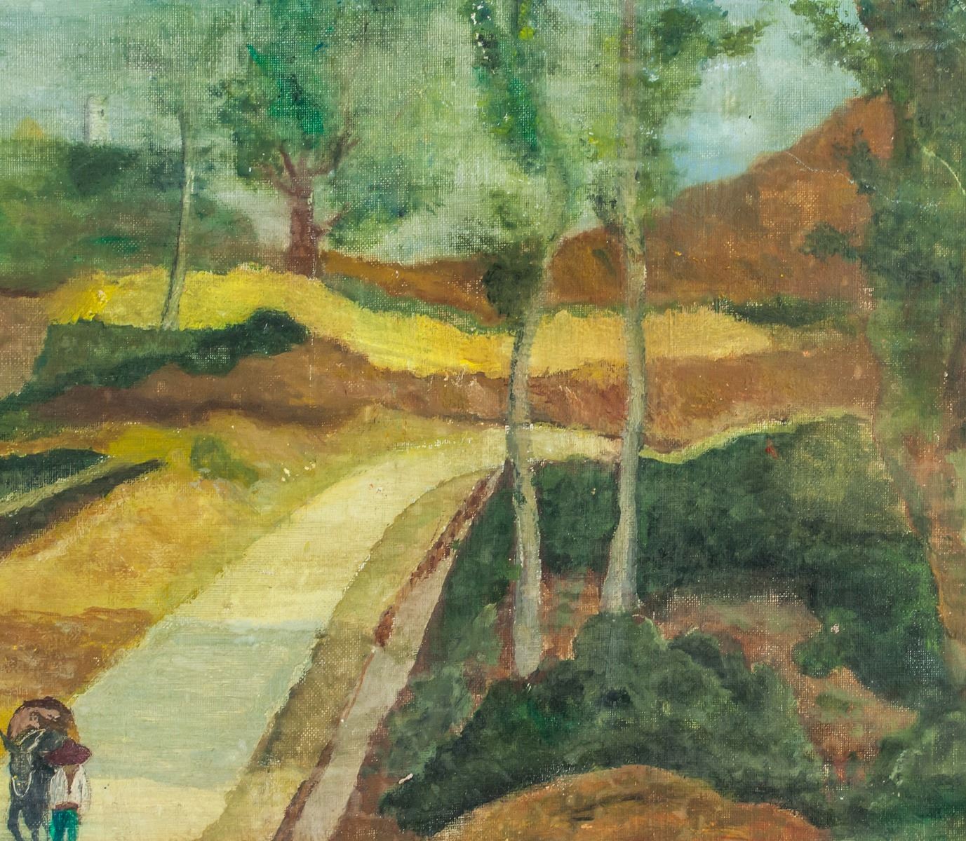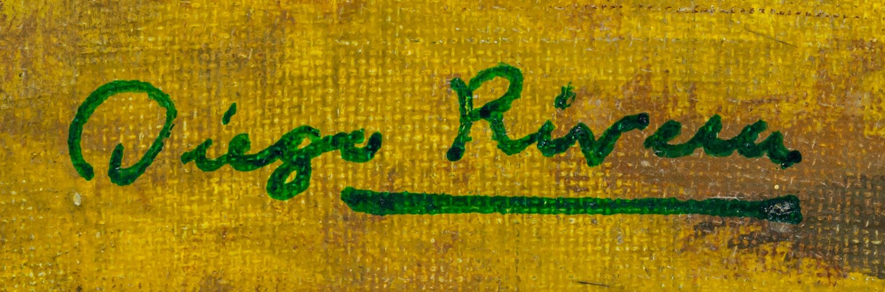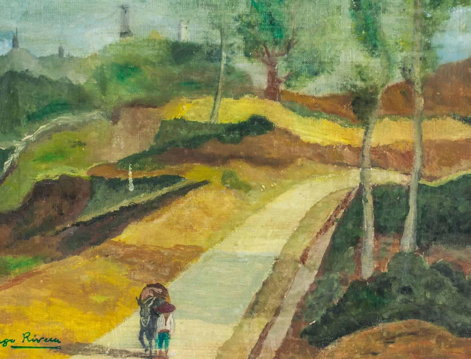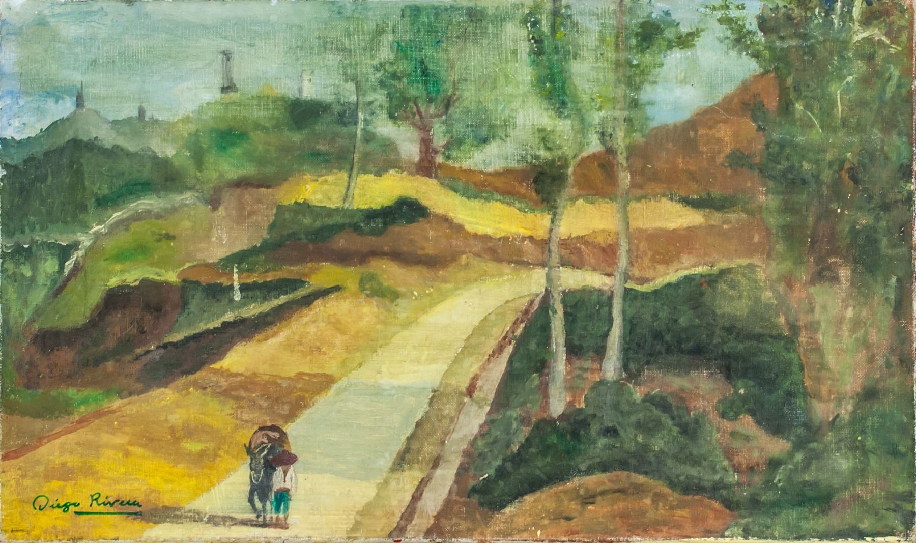 Oil on canvas, stretched. Featuring a landscape scene. Signed Diego Rivera on the lower left corner. Stamped with red wax seal on verso. Attributed to Diego Rivera (1886-1957, Mexican). 33 x 55 cm (13.0 x 21.7 inches)