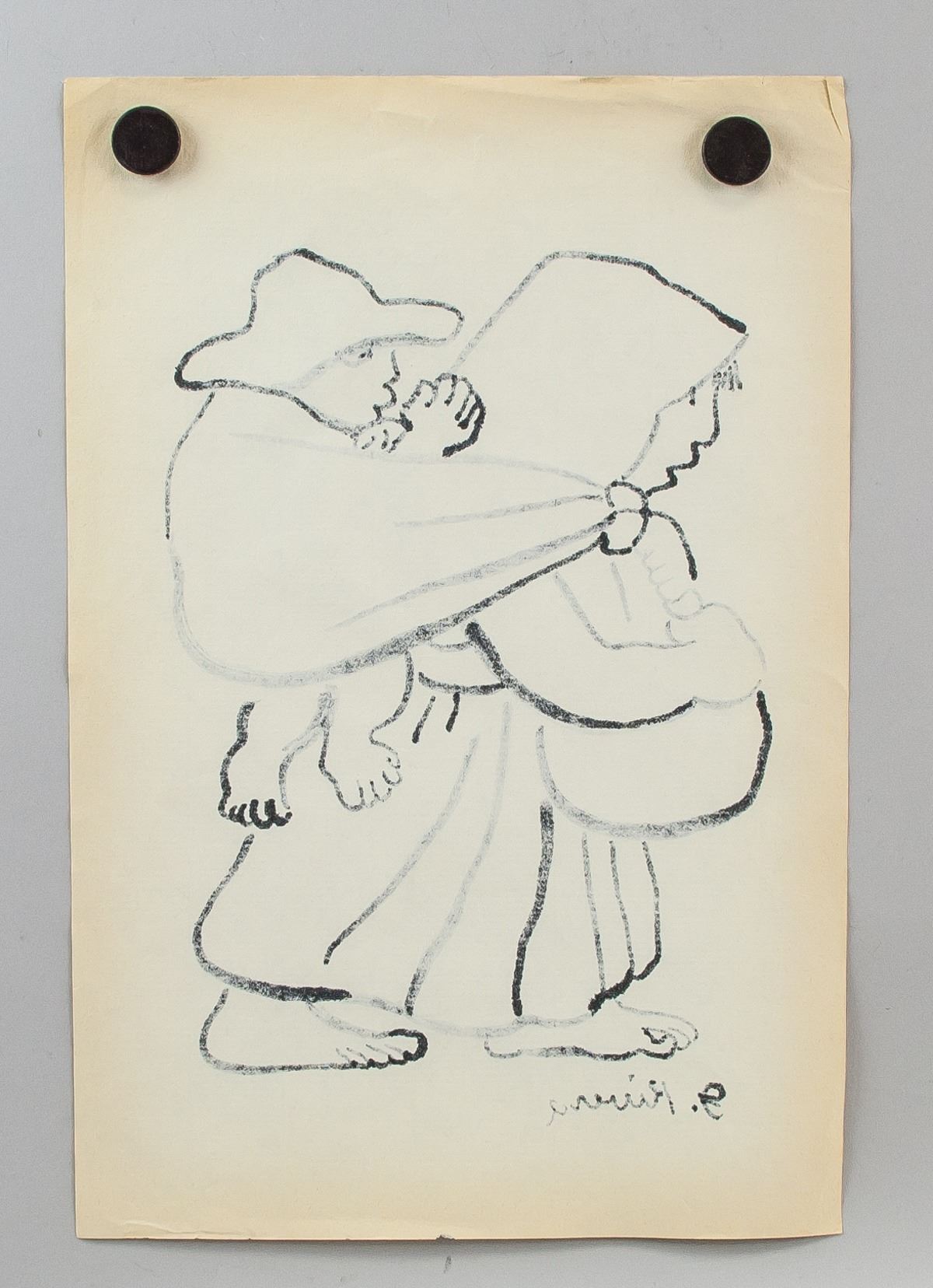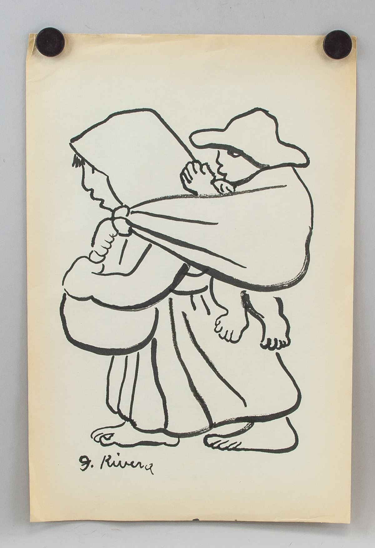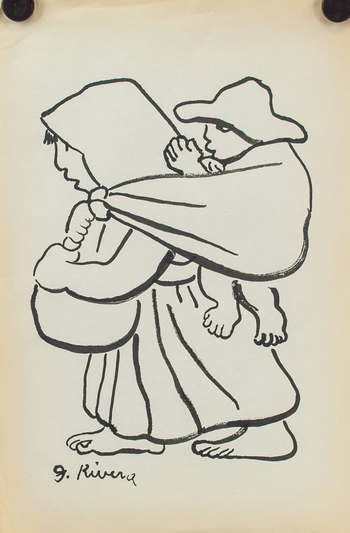 Ink on paper. Featuring a woman carrying a child. Signed D. Rivera on the lower left corner. Attributed to Diego Rivera (1886-1957, Mexican). 33 x 22 cm (13.0 x 8.7 inches). PROVENANCE: Upper New York estate