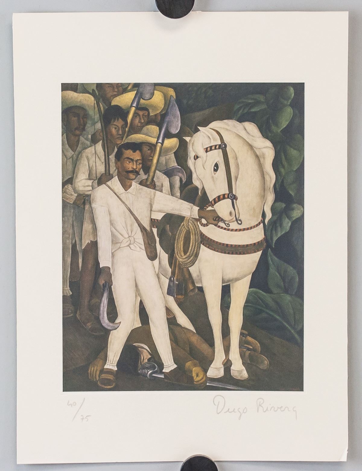 Linocut on paper. Featuring a portrait scene. Signed Diego Rivera and inscribed 40/75 on the lower right and lower left corner, respectively. Attributed to Diego Rivera (1886-1957, Mexican). Image size: 19.5 x 15.5 cm (7.75 x 6 inches), sheet size: 28.5 x 21 cm (11.25 x 8.25 inches). Provenance: This lot carries limited provenance from a Southern Ontario estate
