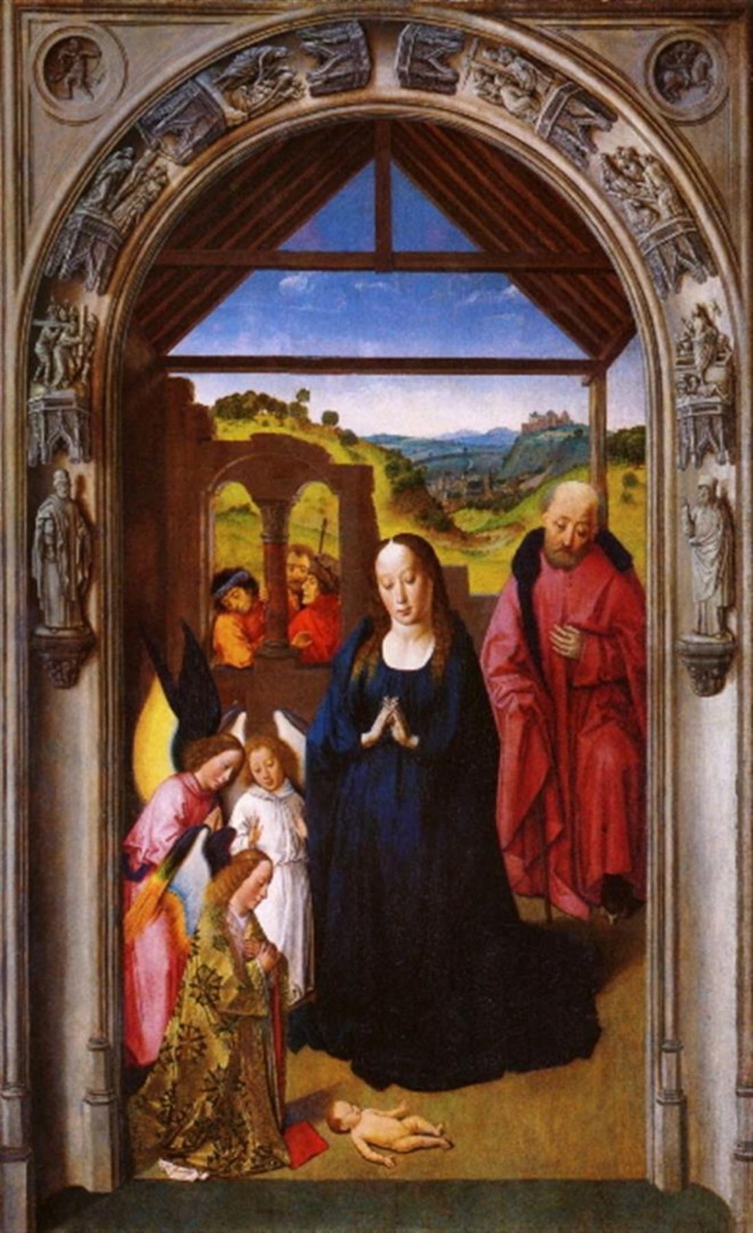 Artist: Dieric Bouts - Title: Birth of Christ - Medium: Fine Art Giclee on Canvas - Image Size: Approximately 20 inches x 12 inches - Unframed on Unstretched Canvas - Biography: Dieric Bouts(c. 1415 - 6 May 1475) was an Early Netherlandish painter. Bouts may have studied under Rogier van der Weyden, and his work was influenced by van der Weyden and Jan van Eyck. He worked in Leuven from 1457 (or possibly earlier) until his death in 1475. Bouts was among the first northern painters to demonstrate the use of a single vanishing point (as illustrated in his Last Supper).