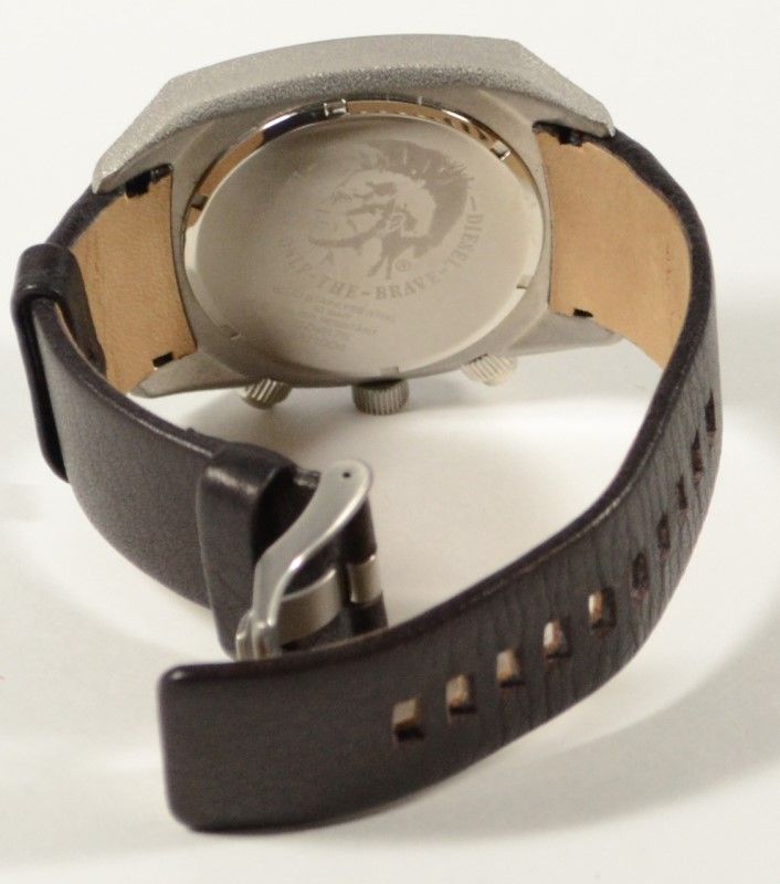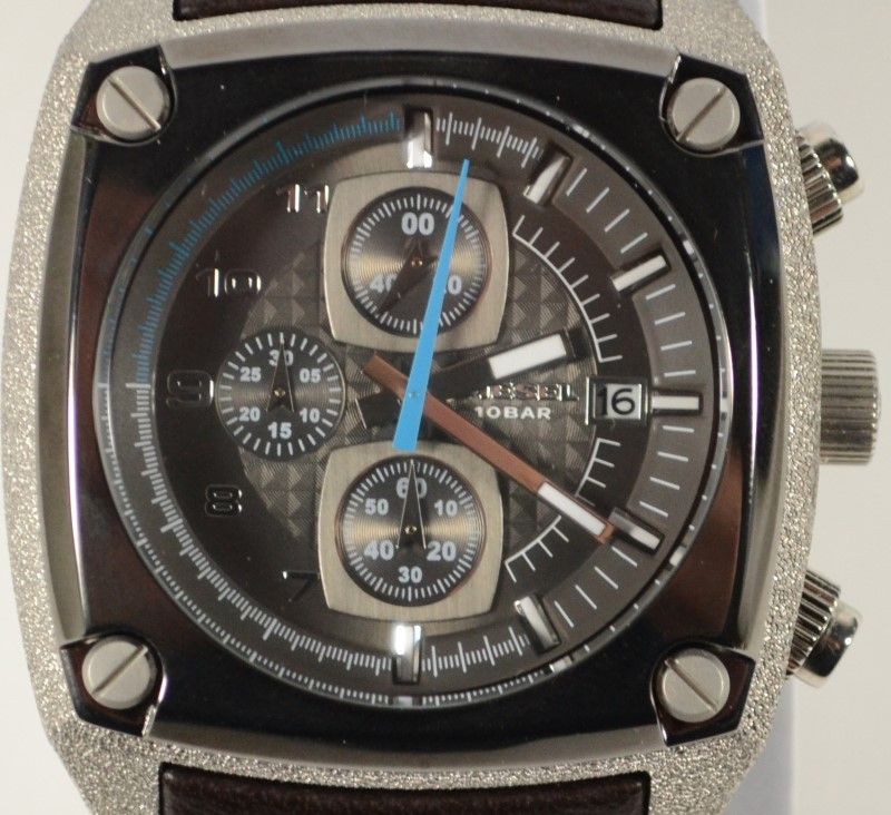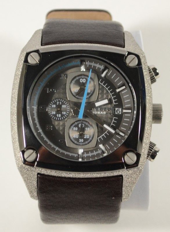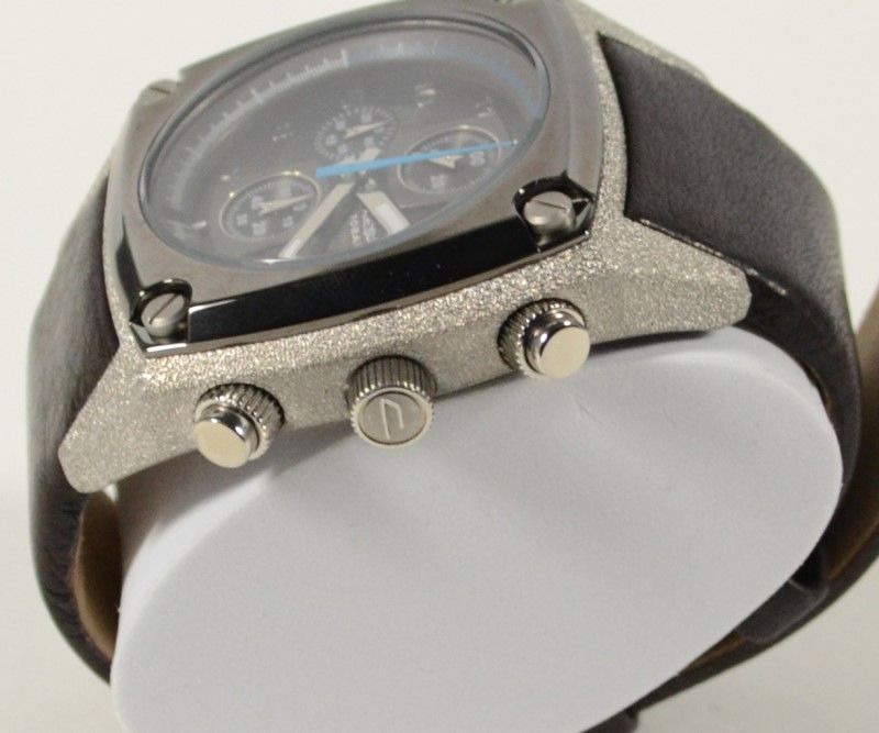 Solid Stainless Steel, Water Resistant. Linear shapes are the focal point of this stylish timeframe. Stainless steel case features a gunmetal bezel and exposed screws, and a blue second hand completes the look. Battery Not Included. EST 120.00-140.00