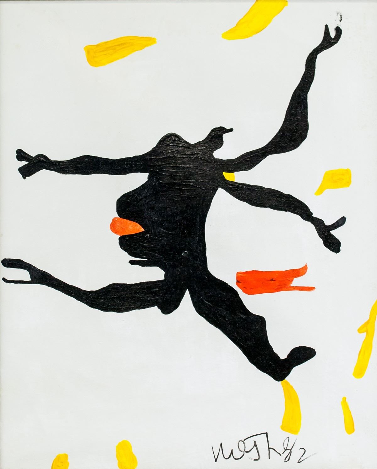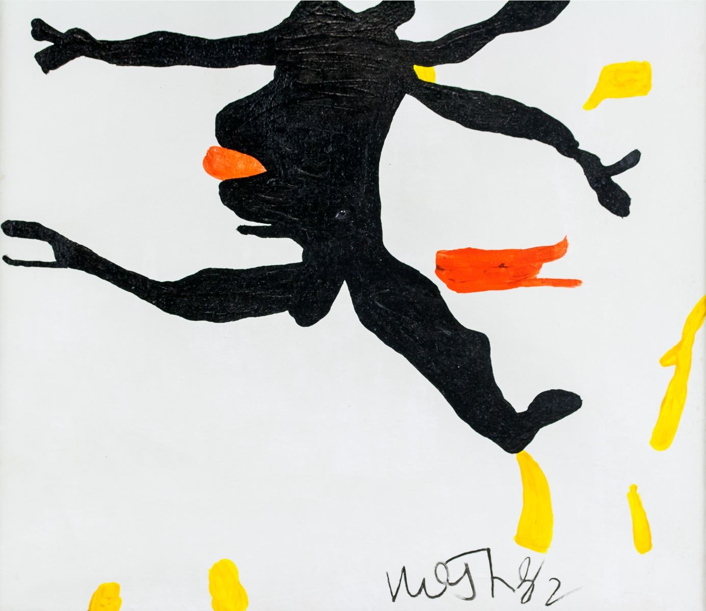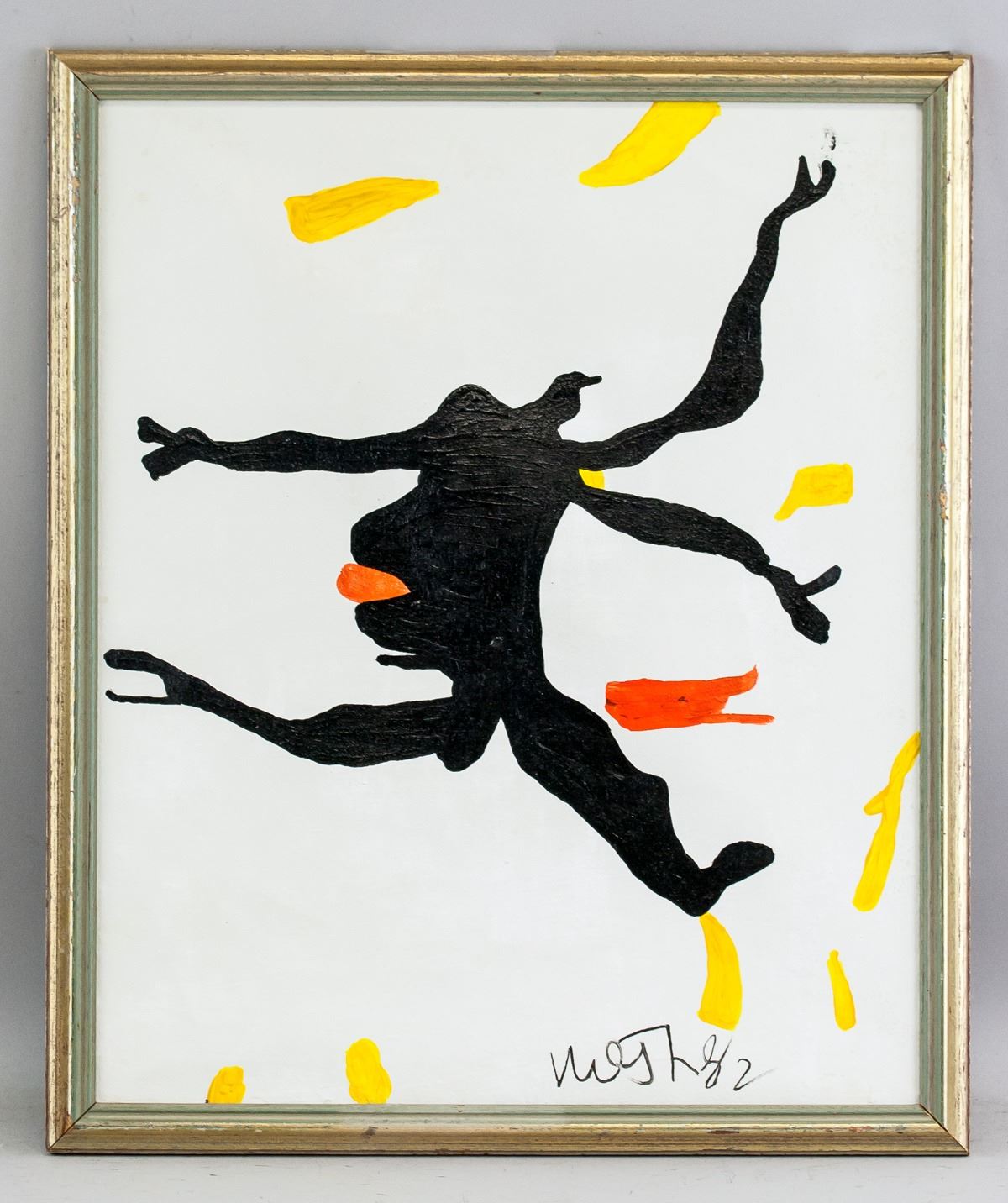 Oil on canvas, stretched and framed. Featuring a portrait of a figure. Signed on the lower right corner. Attributed to Dieter Roth (1930-1998, German-Swiss). 44 x 36 cm (17.3 x 14.1 inches). PROVENANCE: Southern Ontario estate