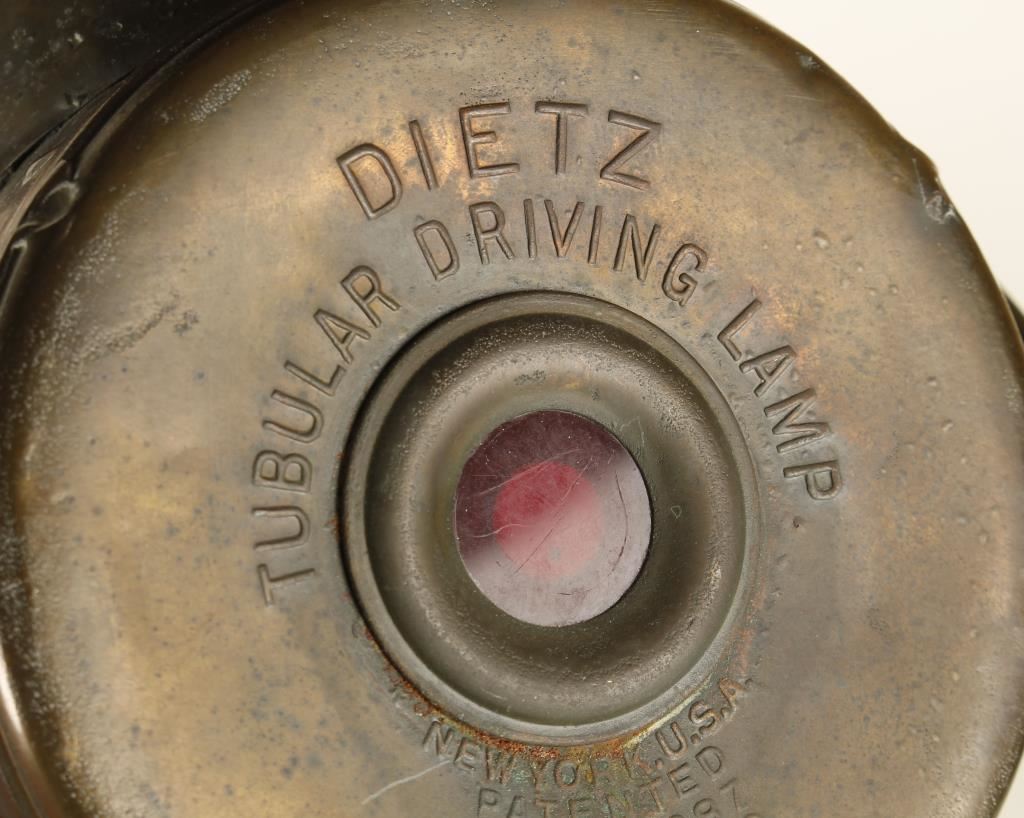 Metal and glass construction. Reads "Tubular Driving Lamp, New York USA, Patented".