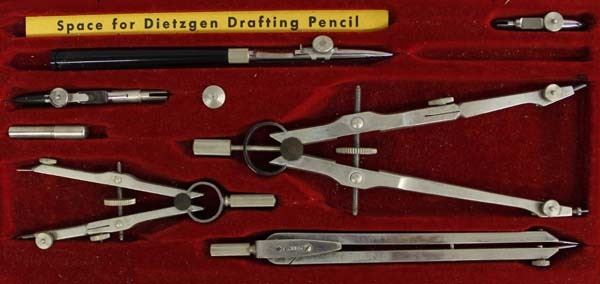 Dietzgen Master-Pro Drafting Set #1212 PJ, made in Germany ca. 1960s, case measures 10.5'' x 5'', comes in original case