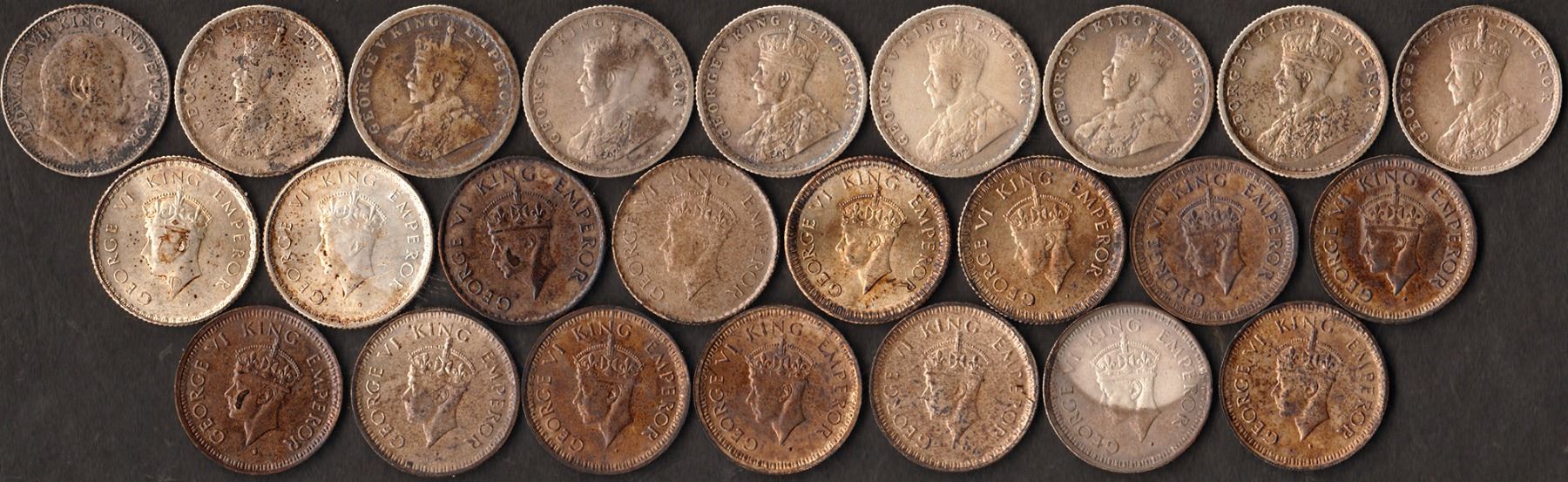 King Edward VII, George V & VI, Silver ¼ Rupee (24), Calcutta & Bombay Mint, toning, AVF-AU, Rare as a set.