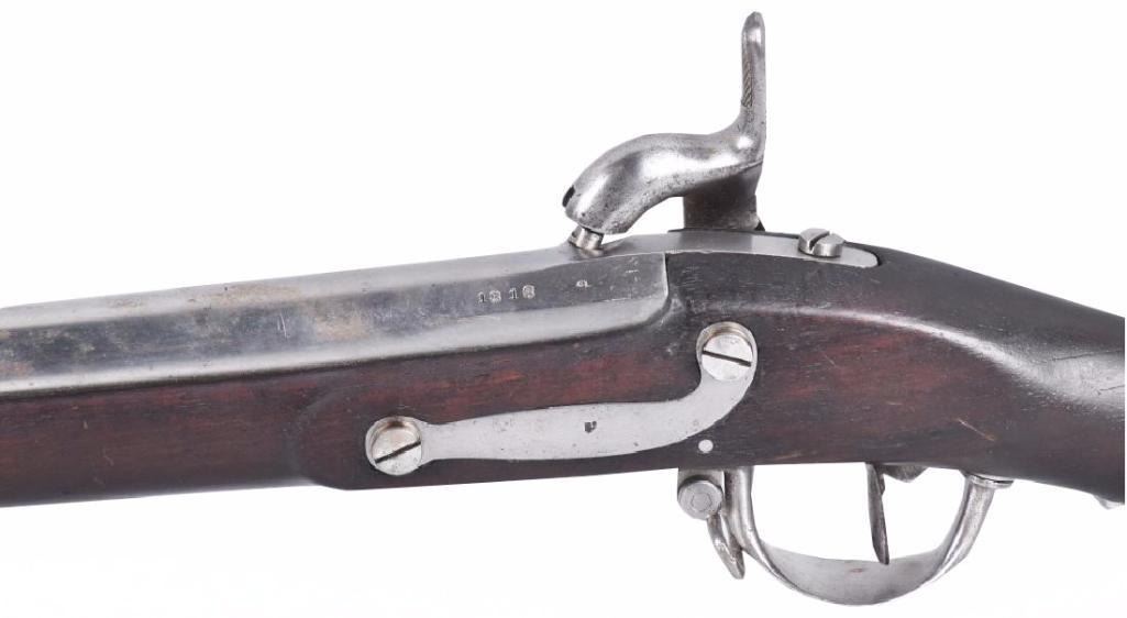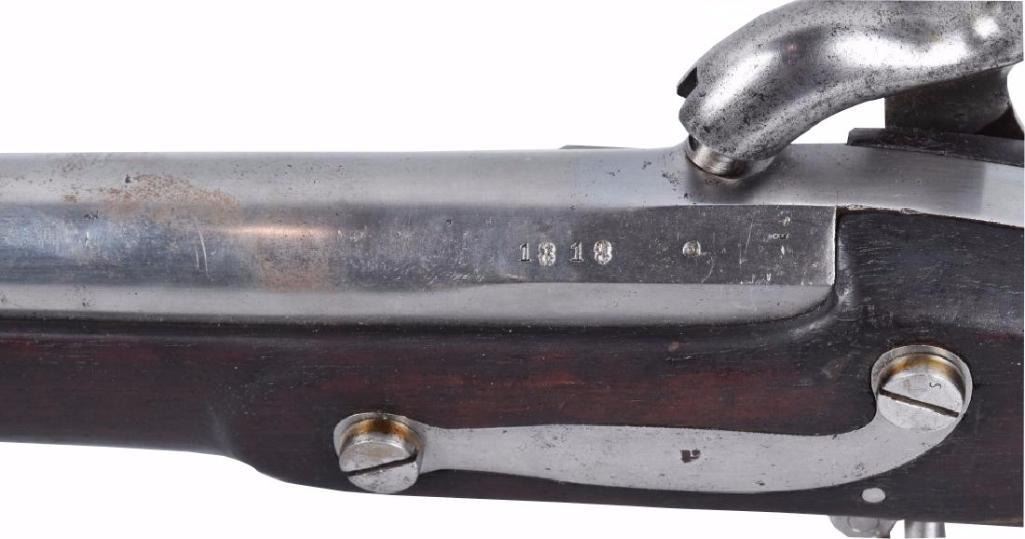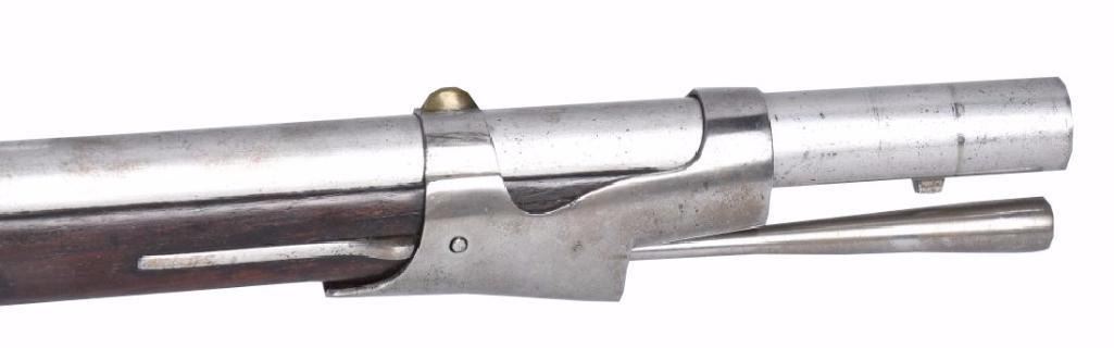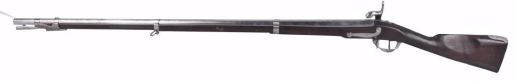 42" barrel , gun is in very nice condition. metal has been cleaned and appears the gun is in the "white". Converted to percussion and has strong lock action. Breech is dated 1818. Very Good-Excellent