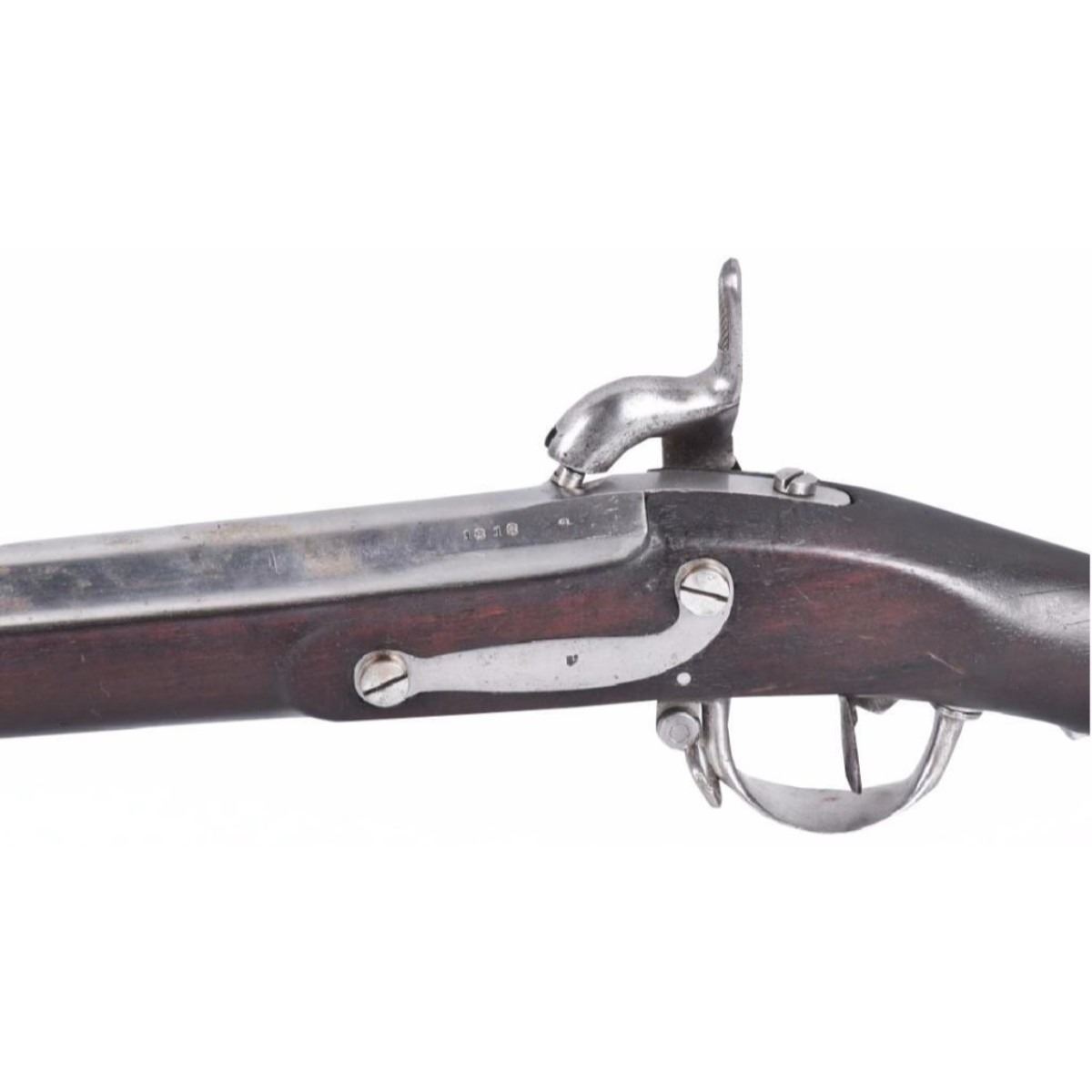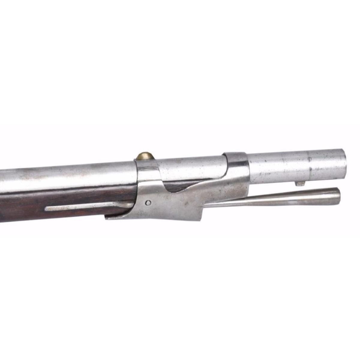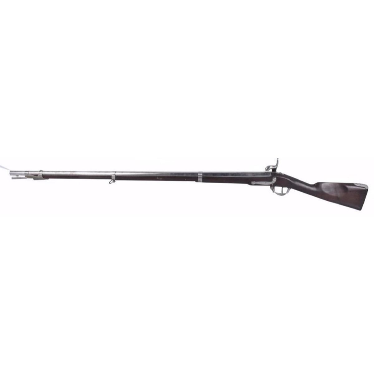 42" barrel , gun is in very nice condition. metal has been cleaned and appears the gun is in the "white". Converted to percussion and has strong lock action. Breech is dated 1818. Very Good-Excellent