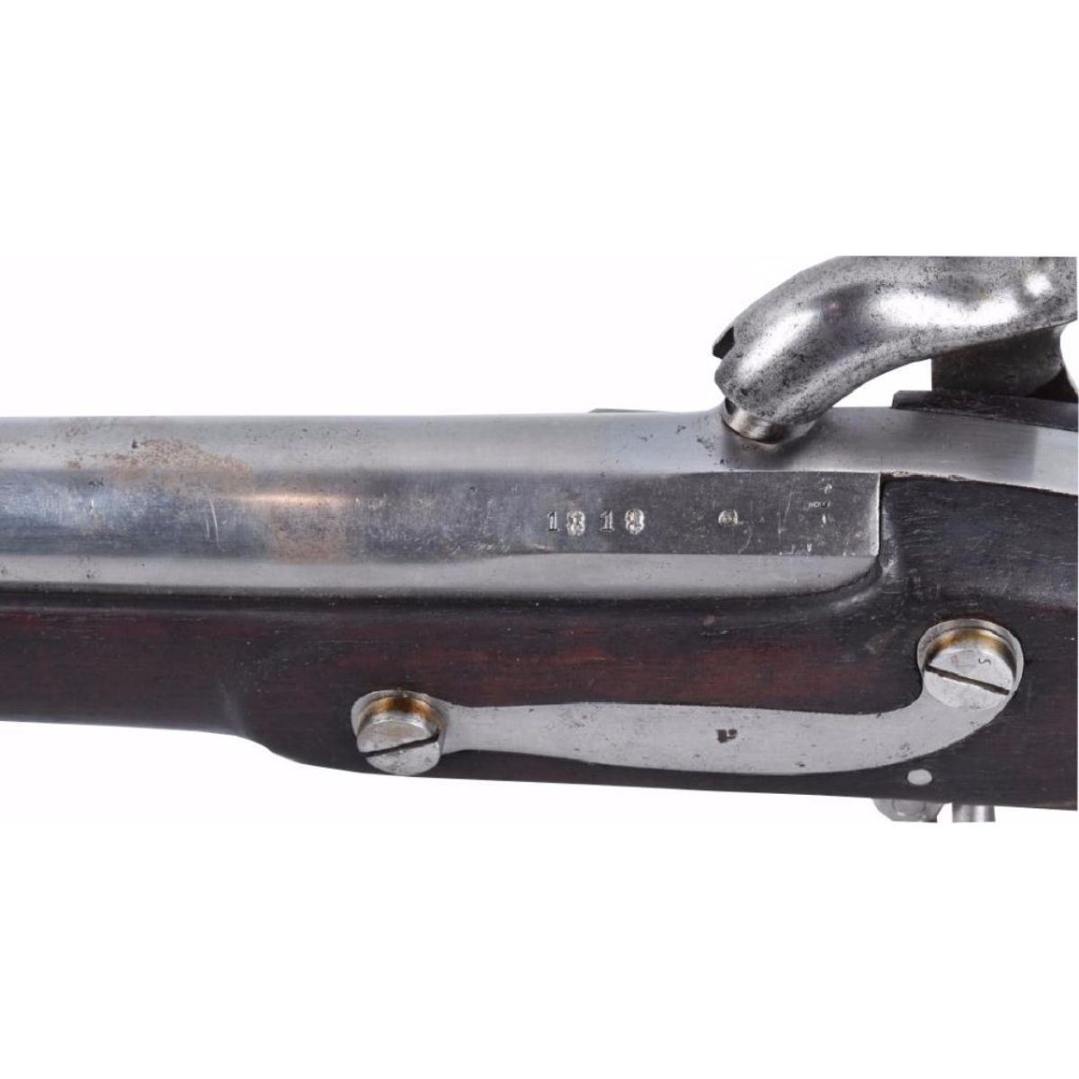 42" barrel , gun is in very nice condition. metal has been cleaned and appears the gun is in the "white". Converted to percussion and has strong lock action. Breech is dated 1818. Very Good-Excellent