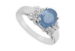 Two dramatic X motifs hold an oval diffuse sapphire in between them. These Xs are accentuated with round white CZs. Made in 10K white gold this ring has a total weight (TGW) of 2.75 carat.