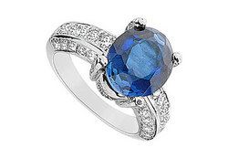 An oval-shape diffuse sapphire is prong-set in the middle & smaller white CZs are set on both side. Made in 10K white gold this ring had a total gem weight (TGW) of 6.50 carat.