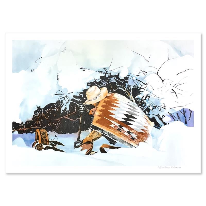 "Diggin In" is a limited edition lithograph on paper, numbered 203/425 and hand signed by William Nelson. Includes Letter of Authenticity. Measures approx. 29" x 22" (border), 27" x 20" (image). There may be minor imperfections in the white border area but the piece is in overall good condition.