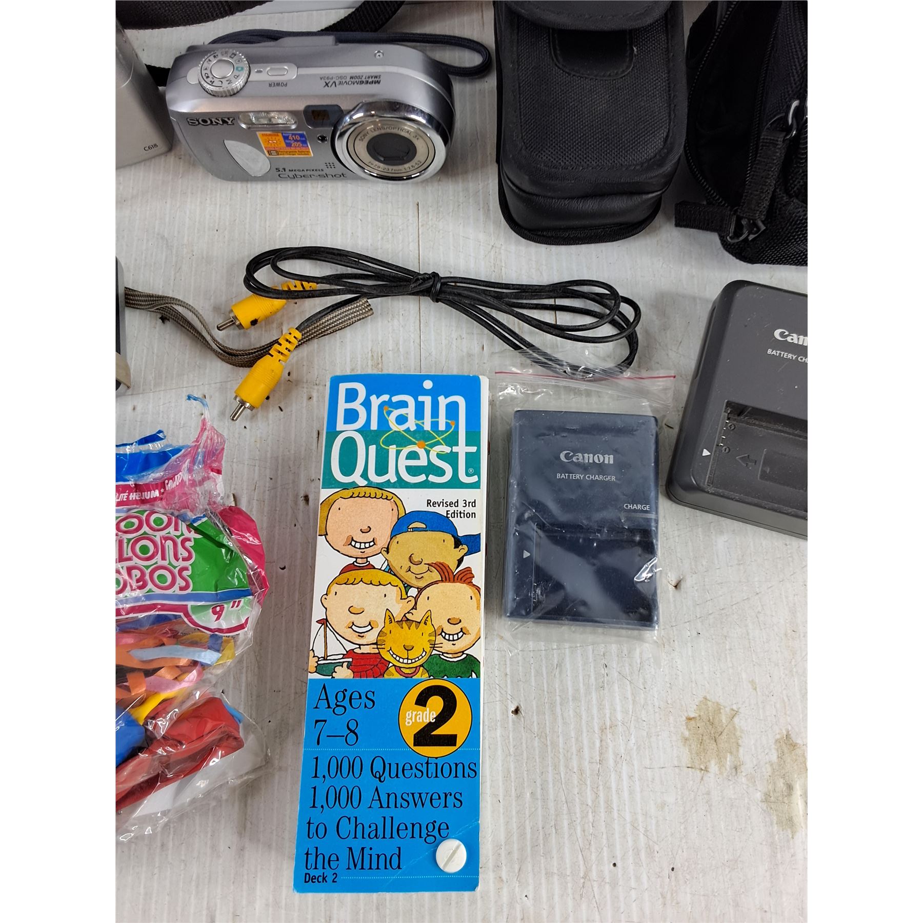 Digital Cameras - Canon, Sony & Hewlett Packard, Battery Chargers, Camera Bags, Brain Quest Book