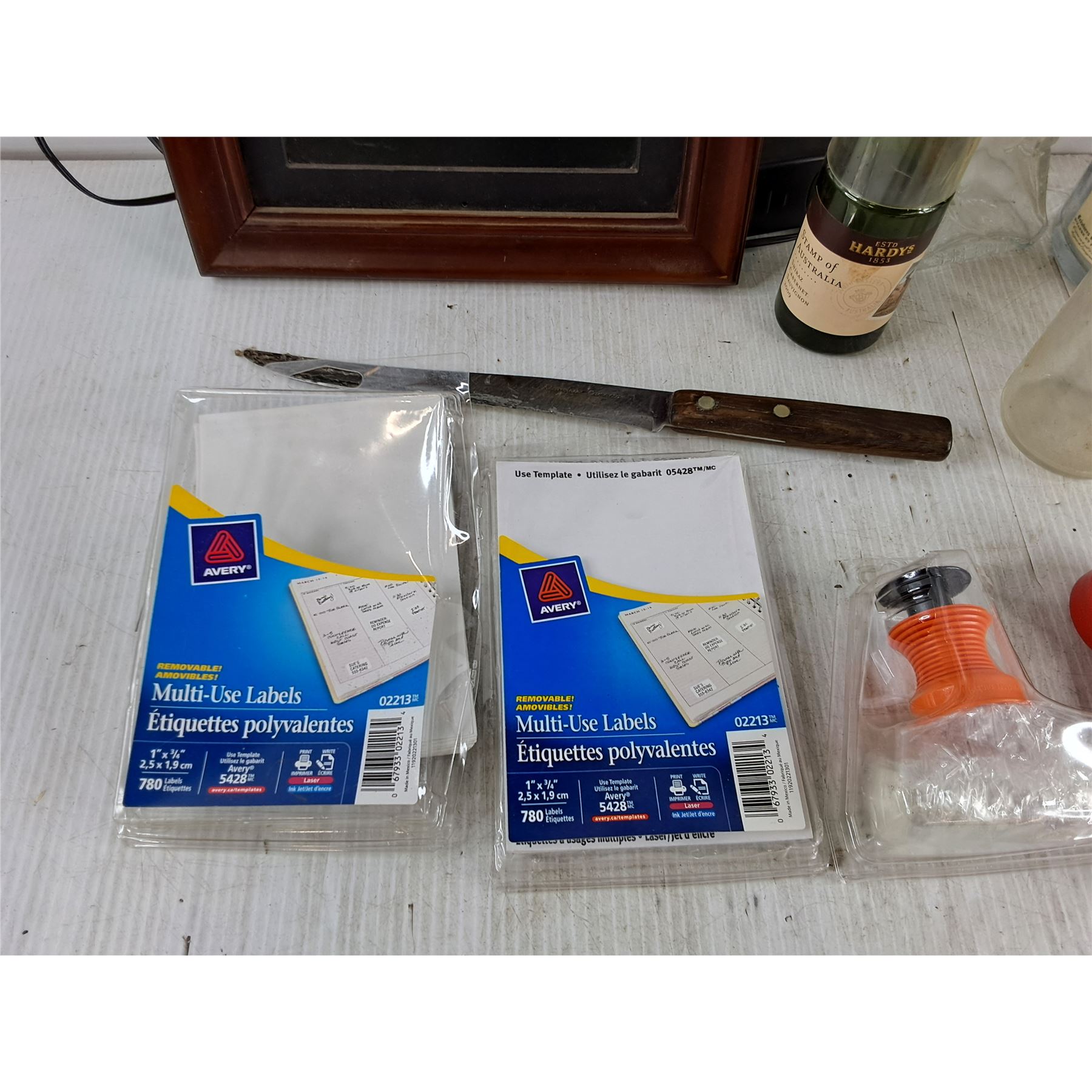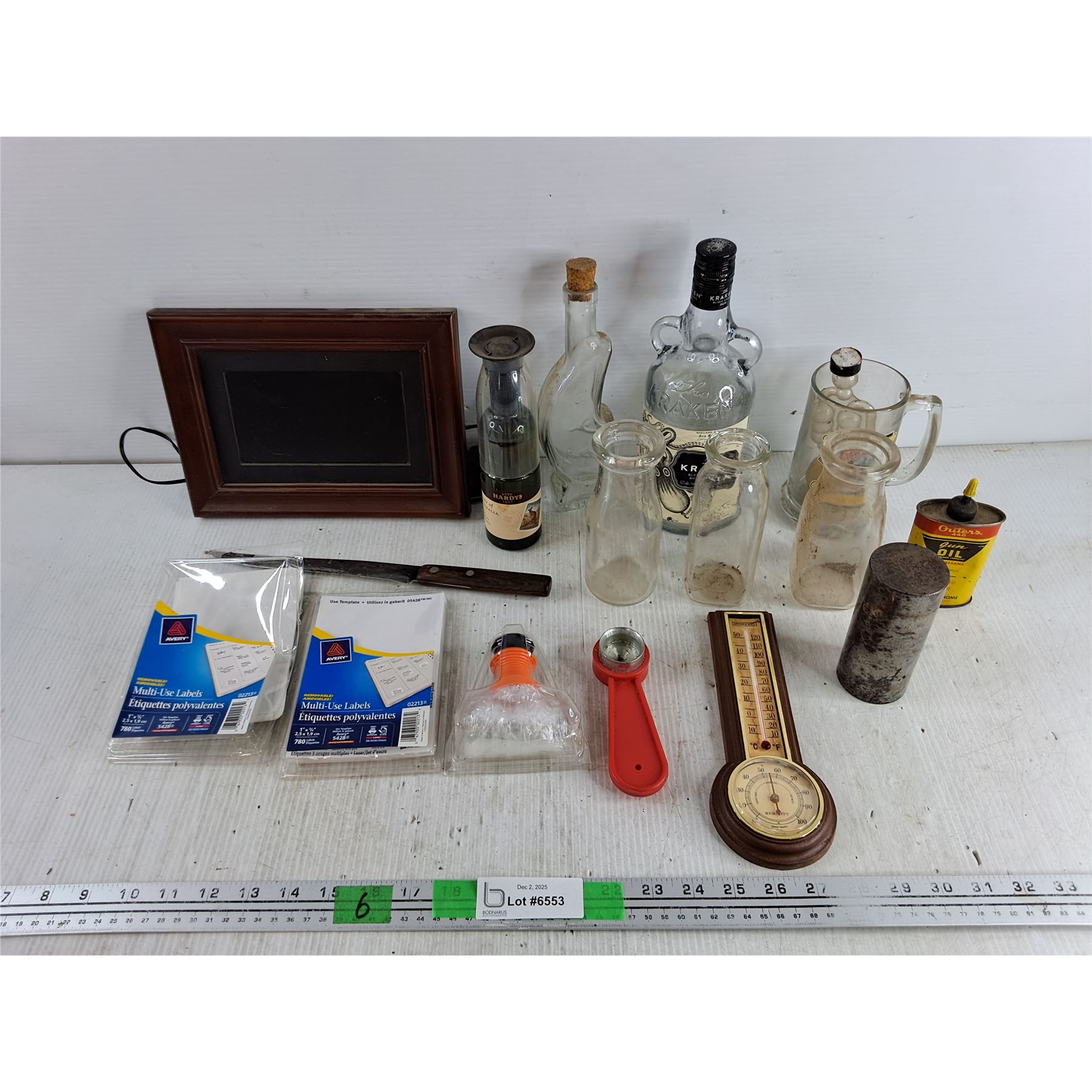 Digital Picture Frame - Powers On, As Is, Thermometer, Various Bottles, Beerstein, Multi Use Labels