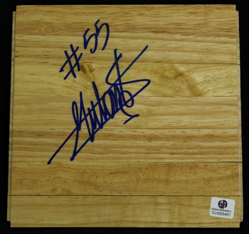 Floor Tile measures 6x6" and has been hand-signed in blue felt-tip pen by Dikembe Mutombo. The autograph includes a Global Authentics (GA) hologram and matching COA for authenticity purposes.