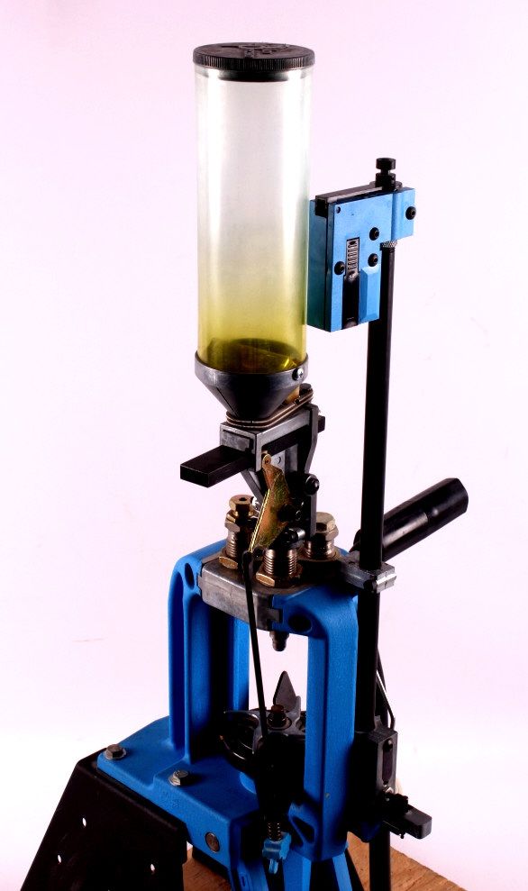 This lot features a Dillon ammunition reloading press. The press is a model RL550. It comes with 9mm reloading dies. Dillon Precision Products is an industry leading manufacturer of reloading equipment. This press is in very good condition. It measures 12" x 13" and is 30" tall.