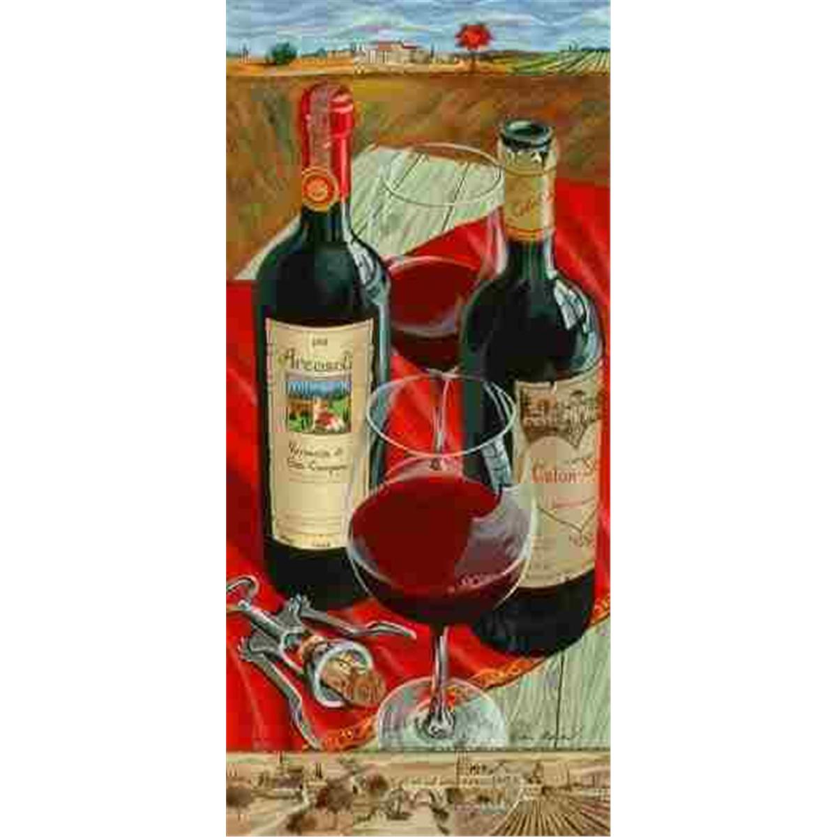 Hand drawn, photo realistic 29”x13” serigraph signed in pencil by the artist and numbered in an edition of 495 examples. Domestic shipping-$20, International depends upon location. Dima Gorban was born in the former Soviet Union in 1961, and moved to Kishinev with his family when he was three. He started art studies at age ten at the Kishinev School of Art, and received an award for being the most promising young artist in the school. In 1980 Dima completed his studies at the Higher School for the Painting Arts in Kishinev, and began showing his work at group exhibitions throughout Moldavia. He quickly reached Moscow as well, and two of his sketches were on permanent exhibit in the Drawing Department of the Moscow Film Academy. He finished his formal studies in 1989 at the Lvov Academy for Painting, which his brother also attended. Dima’s exposure to the world of wine was launched when he was still a child, thanks to his late grandfather, who grew grapes in the spacious yard of their Kishinev home and made wine for home use. A culture of wine was instilled in the entire family, and Dima loved helping his grandfather in all the tasks involved. Having worked with wine as a child, and being a talented graphic designer as an adult, were a great asset for Dima when he was assigned to design labels for the Ackerman Winery in Russia. That period was also when he started his ongoing series of wine paintings.