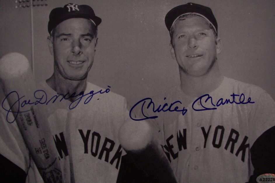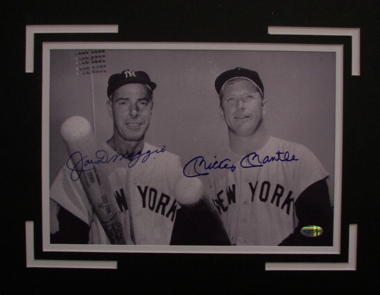 (7854) Dimaggio And Mantle Signed Mat, Certified Y M C,