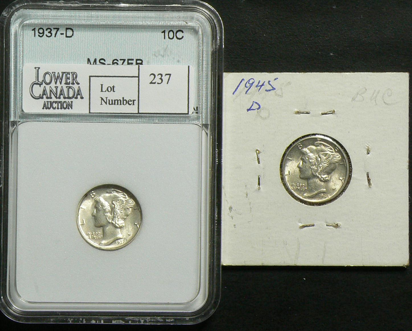 Dime USA 1937, graded NNC MS-67, 1945D. Lot of 2 coins